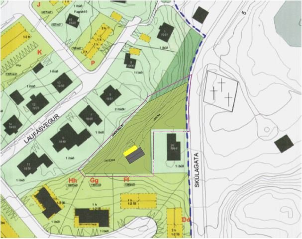 Tillagan afmarkast með aðkomu frá Skúlagötu og lóðum semliggja við Laufásveg og Skúlagötu. Breytingin felst í að opnu grænu svæði íbæjarlandi, verði breytt í íbúðarhúsalóð og að byggingu sem á að fjarlægjasamkvæmt gildandi skipulagi, merkta sk, verði leyft að standa og endurbyggt semíbúðarhús.