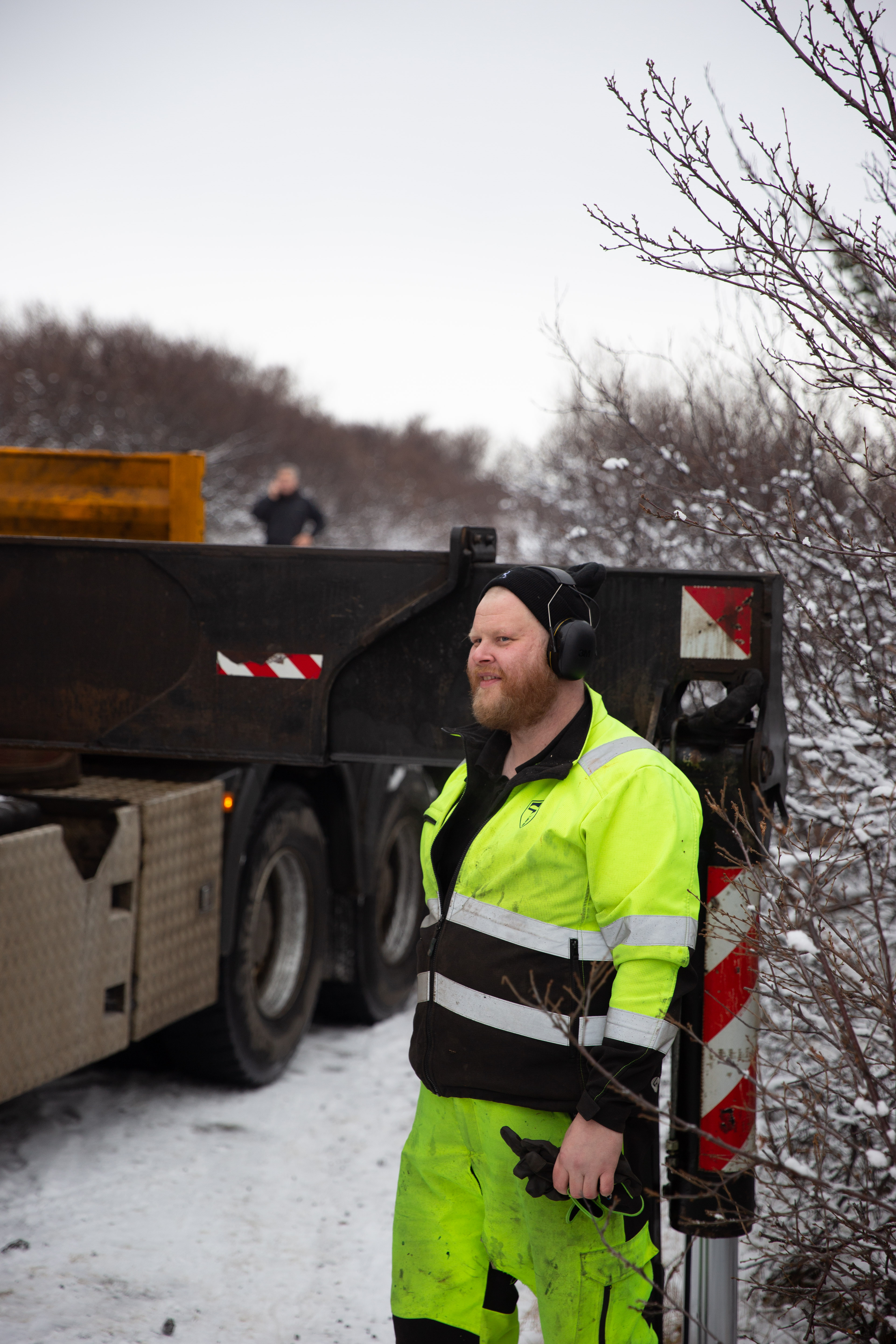 Það var köld stilla og jólalegt um að litast í Sauraskógi síðastliðinn miðvikudag, 25. nóvember, þegar bæjarstjóri felldi jólatréð sem prýðir Hólmgarðinn yfir jólahátíðina.