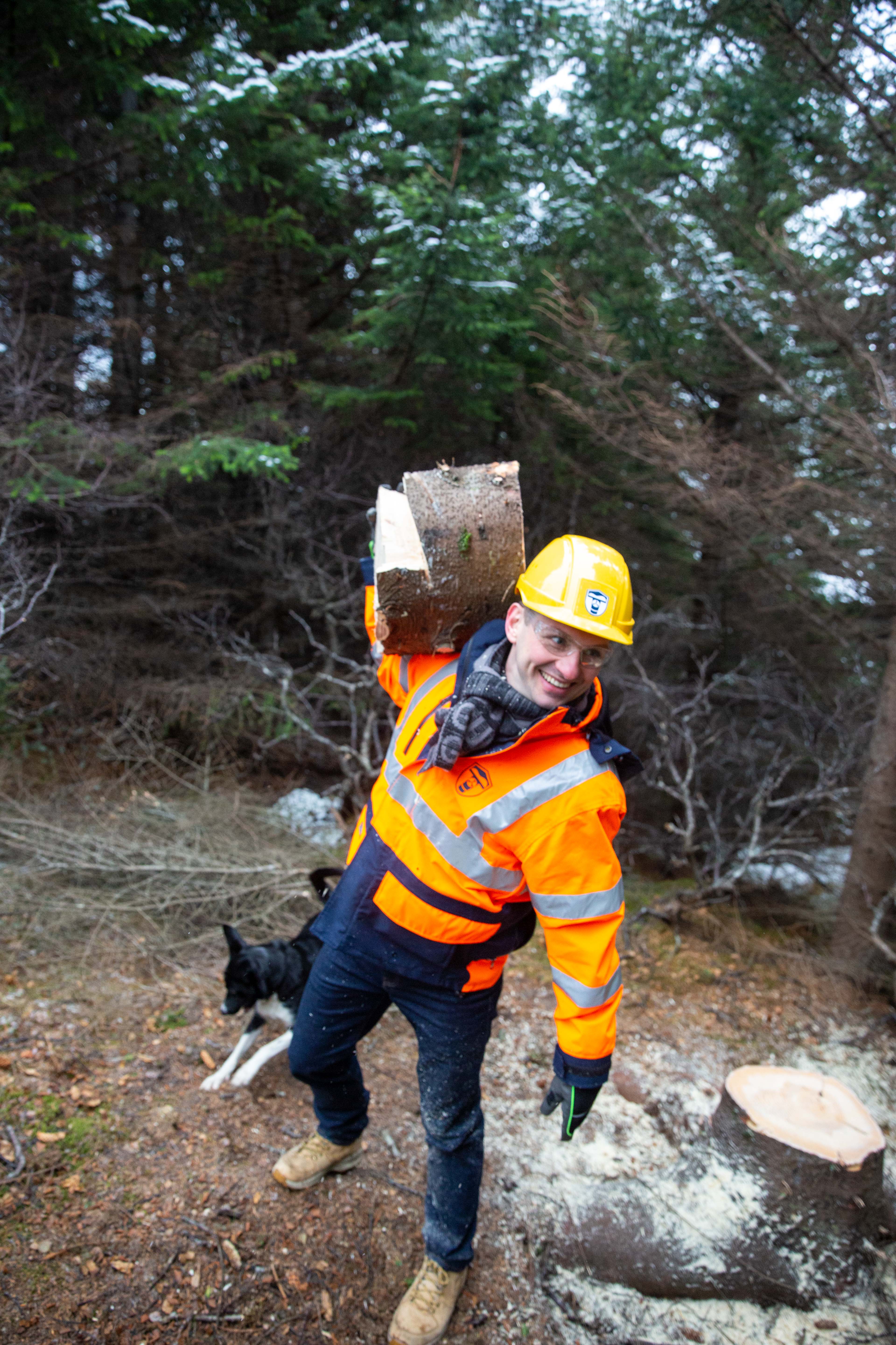 Bæjarstjóri felldi jólatré í Sauraskógi