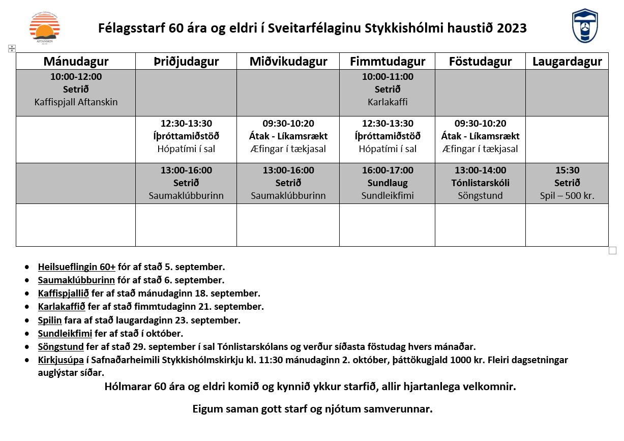 Hólmarar 60 ára og eldri eru hvattir til að taka þátt í starfinu og njóta góðrar samveru. Hér að neðan eru nokkrir punktar varðandi starfið: