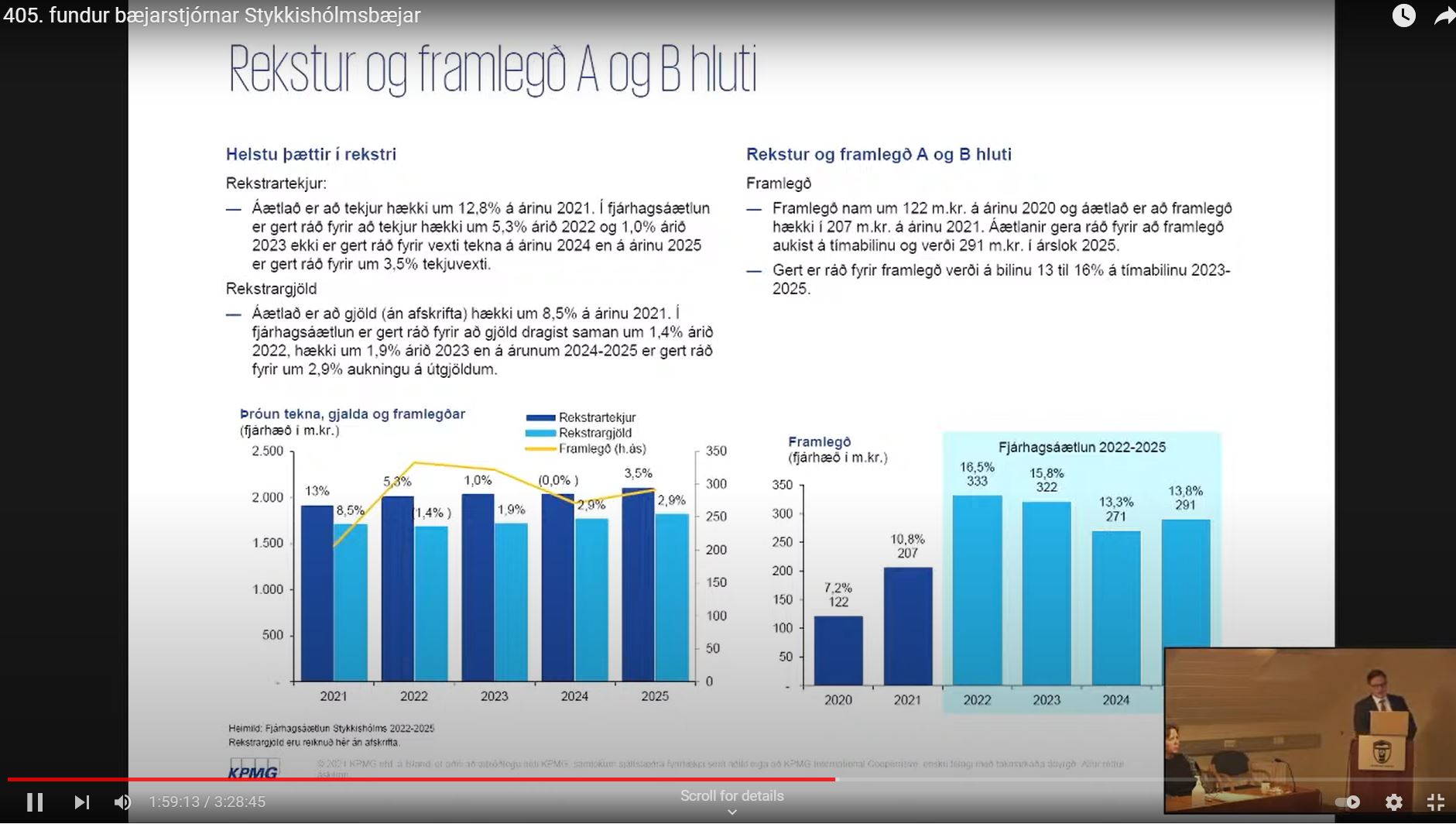 Til nánari upplýsinga má hér fyrir neðan finna kynningu bæjarstjóra á markmiðum og helstu stærðum í fjárhagsáætlun, upptöku frá 405. fundi bæjarstjórnar þar sem fáhagsáætlun var samþykkt í síðari umræðu og samþykkta fjárhagsáætlun Stykkishólmsbæjar 2022 og þriggja ára áætlun 2023-2025.