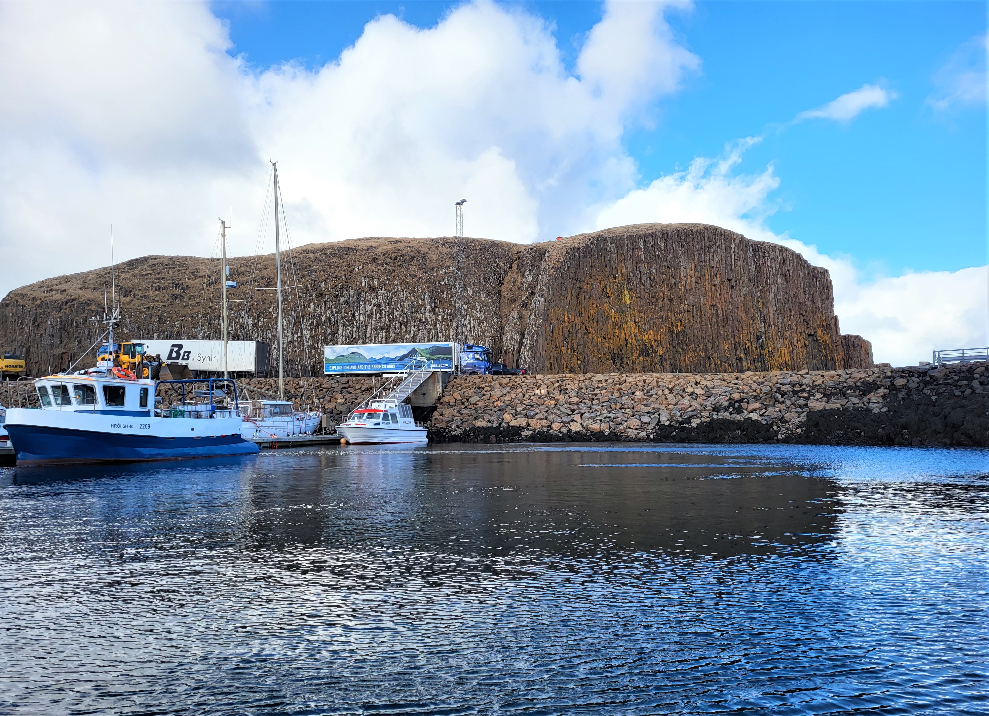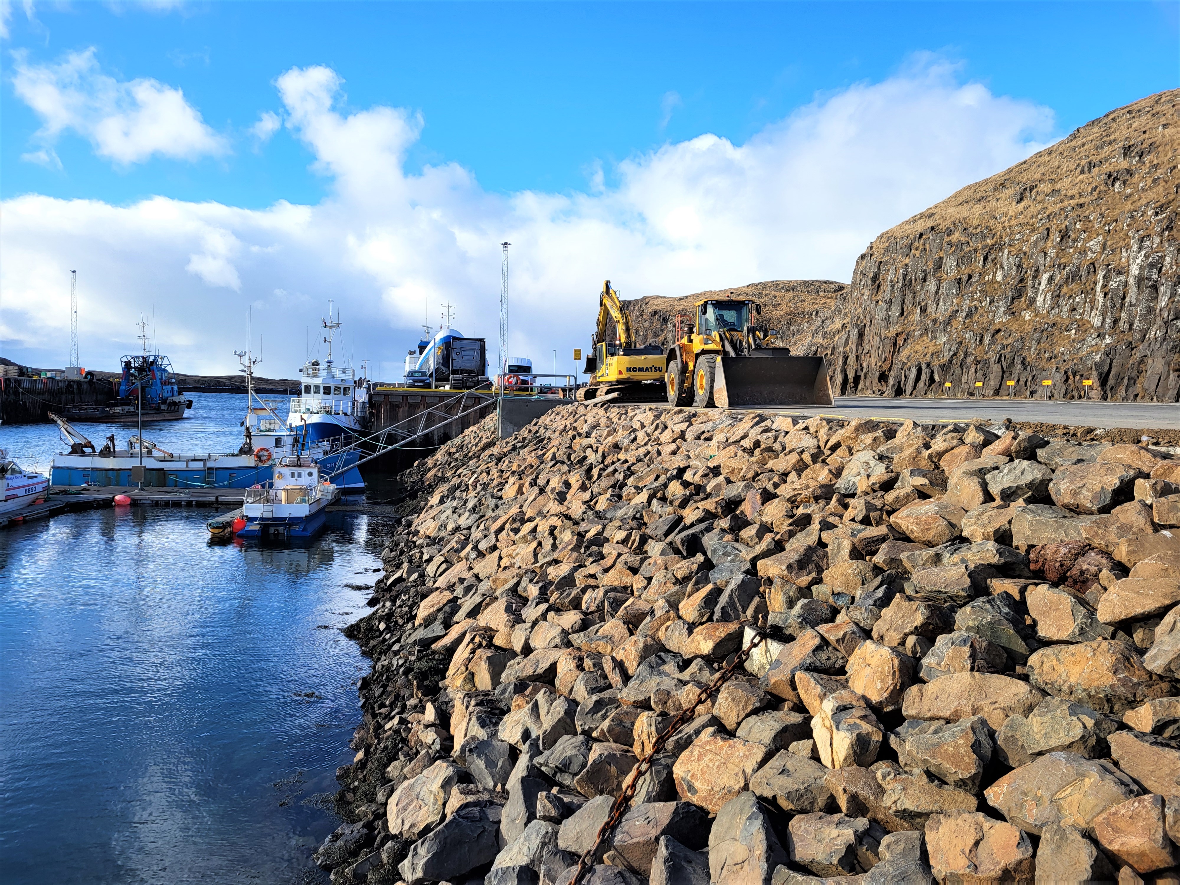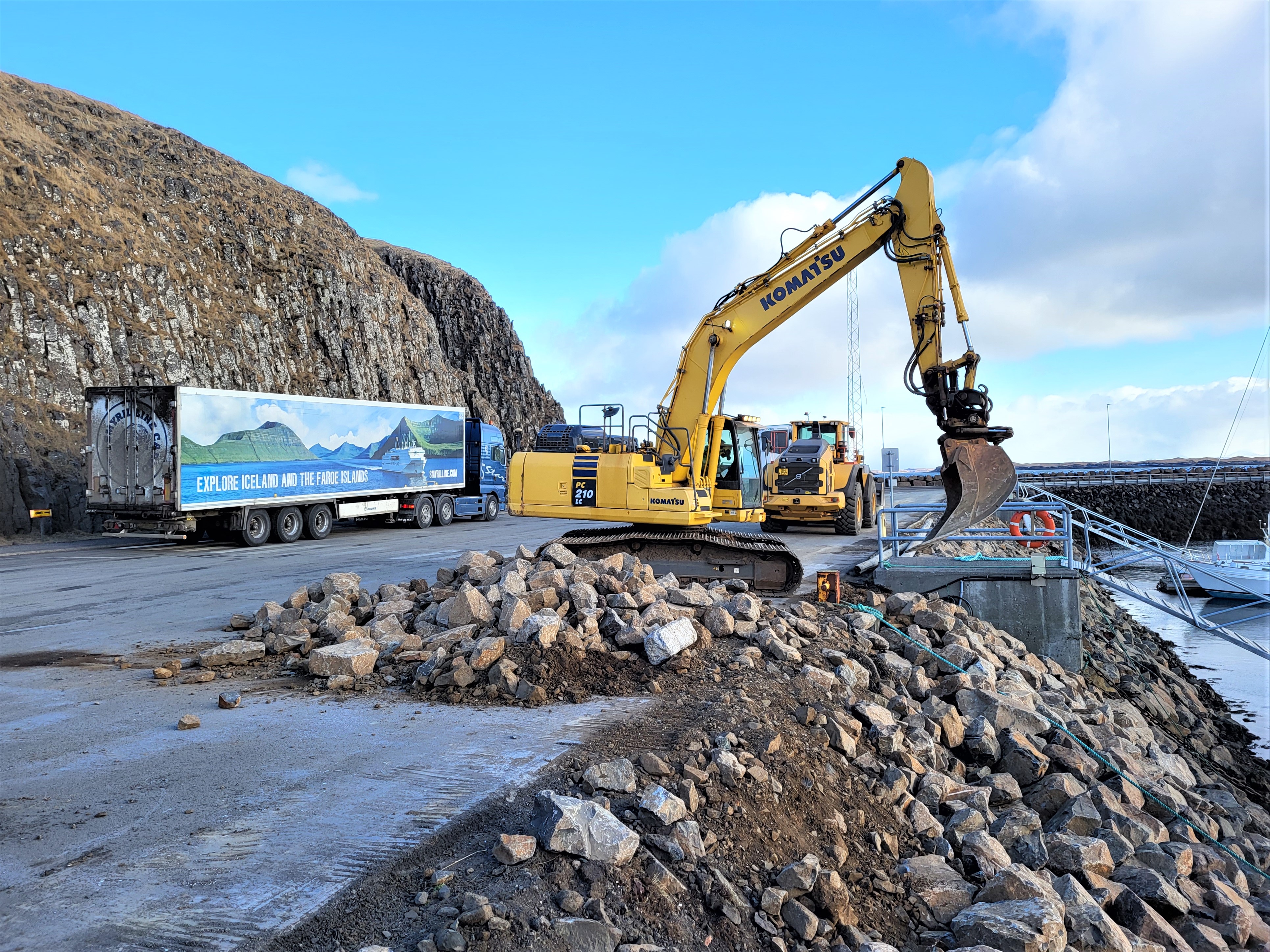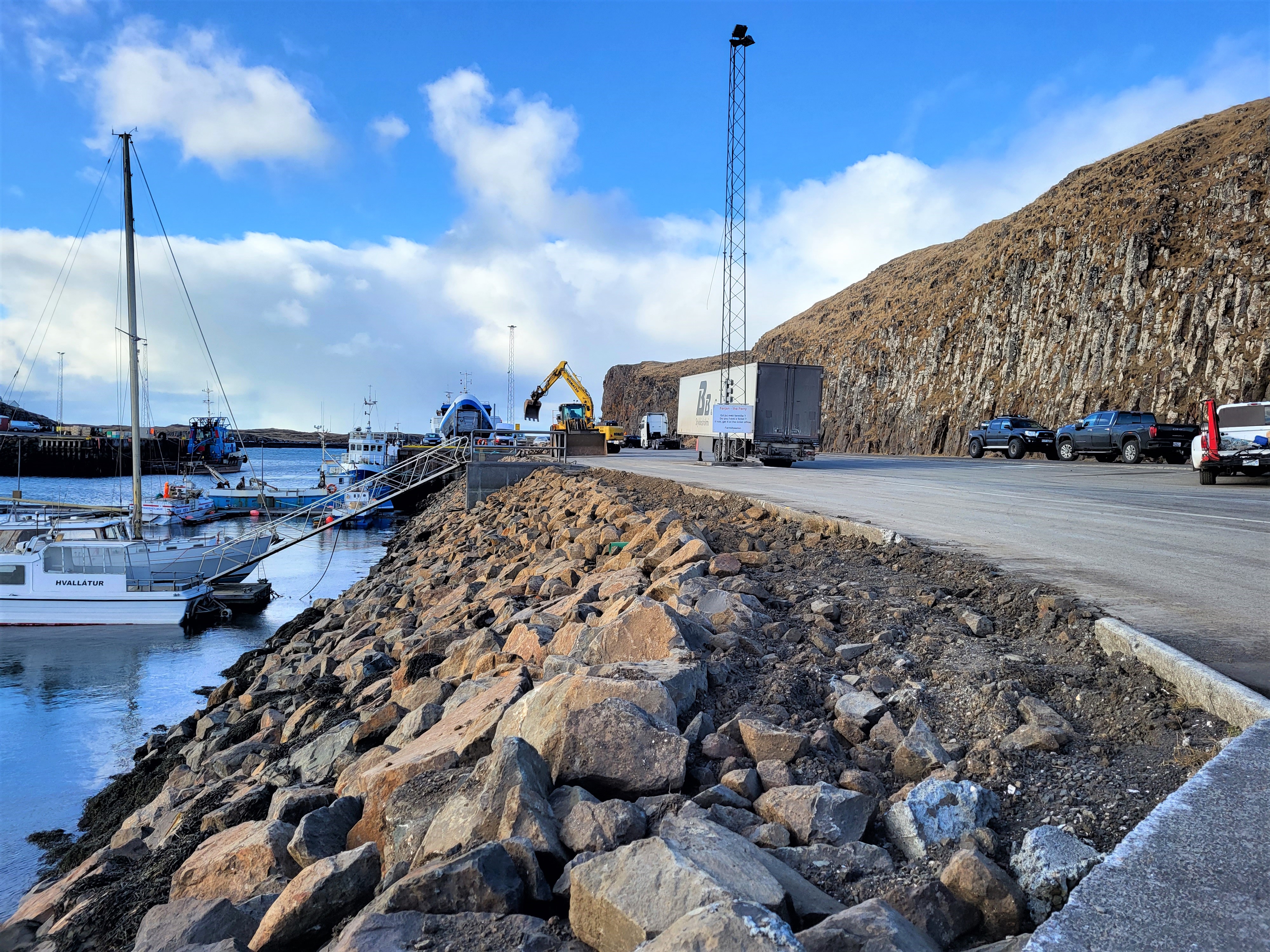 Í liðinni viku stóðu yfir töluverðar framkvæmdir á hafnarsvæðinu í Stykkishólmi. Vegagerðin stendur fyrir framkvæmdunum sem snúa að því að bæta grjóti í hafnarbarðið og tryggja öryggi á svæðinu.