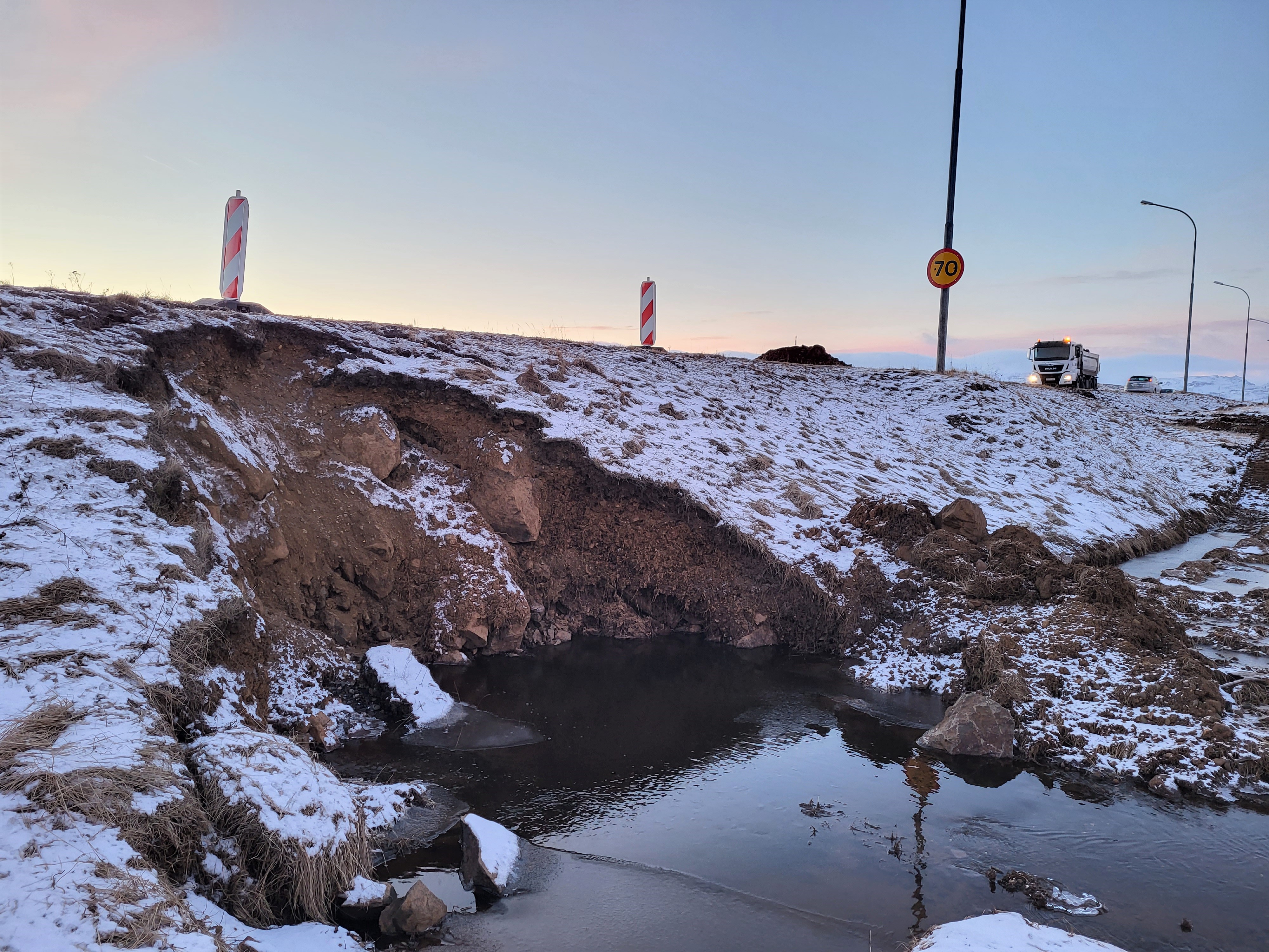 Framkvæmdir standa nú yfir við Stykkishólmsveg, á milli Fákaborgar og Hamraenda. Greint var frá því á vef sveitarfélagsins að til stæði að taka veginn í sundur til að endurnýja rör sem hefur fallið saman og hleypa þannig vatninu sem safnast hefur upp sína leið.