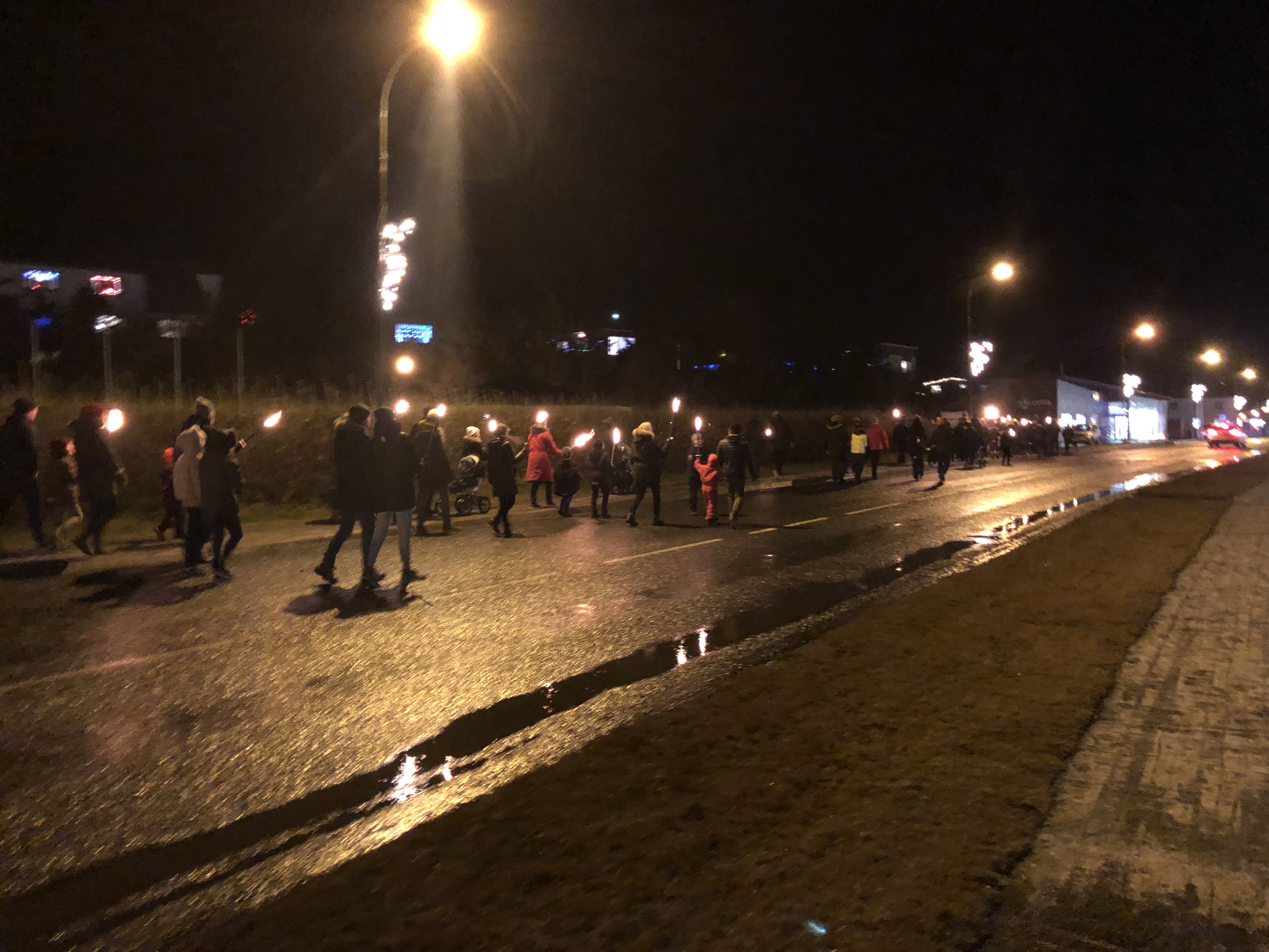 Nemendum 9. bekkjar færðar þakkir fyrir valið og sölu á heitu súkkulaði með rjóma og söngsveitinni Blæ þakkir fyrir fallegan söng sem gaf stundinni sérstakan friðarblæ. Friðargangan á Þorláksmessu ásamt því sem fylgir löngu orðin fastur liður í jólahaldi Hólmara.