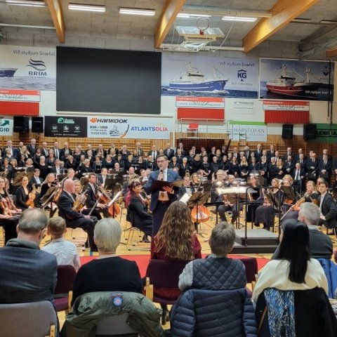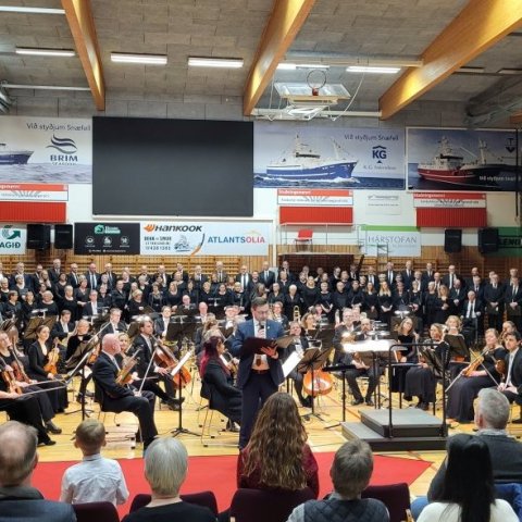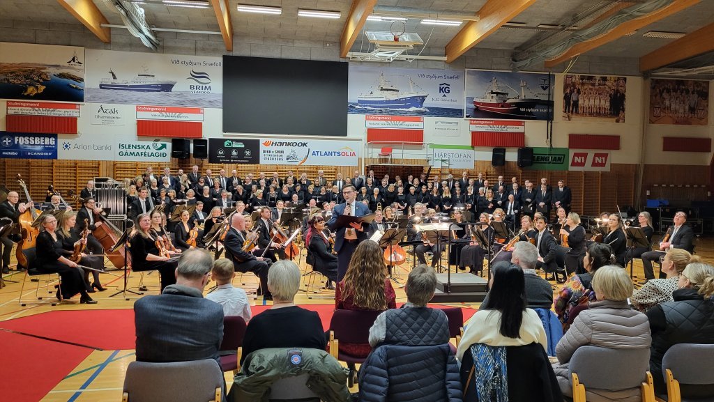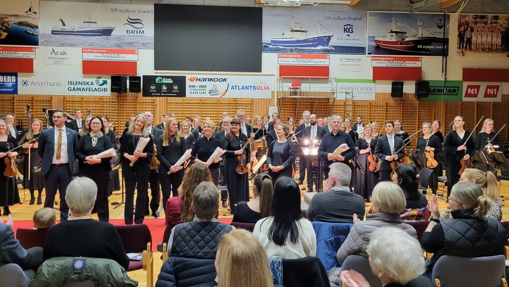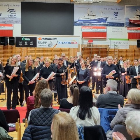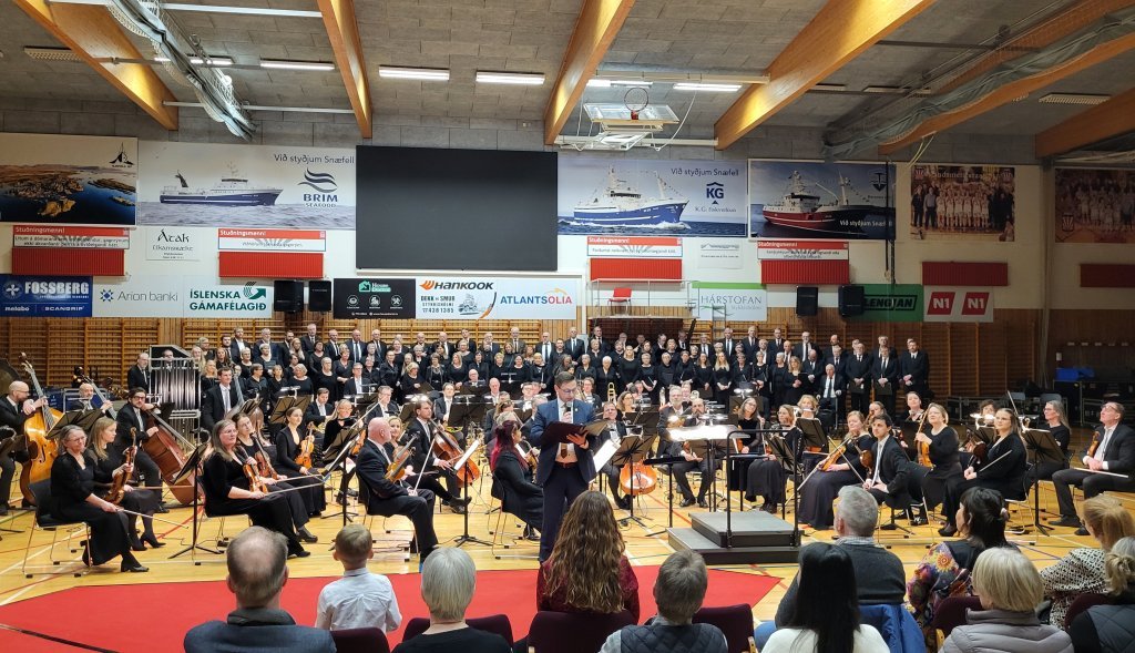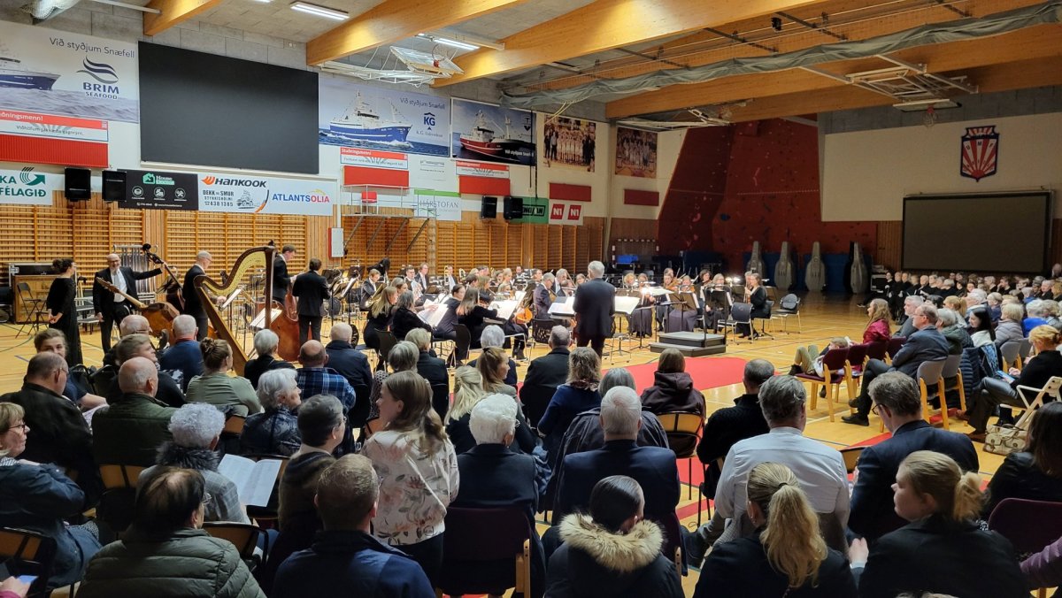 Síðastliðinn fimmtudag, 7. mars, mætti Sinfóníuhljómsveit Íslands í Stykkishólm og hélt stórtónleika í íþróttamiðstöðinni. Áhorfendastúkan var þétt setin auk þess sem töluverður fjöldi sat niðri í sal og naut tónleika, ætla má að hátt í 500 manns hafi mætt á tónleikana. Auk Sinfóníuhljómsveitarinnar komu fram um 80 söngvarar úr Snæfellskum kórum sem fluttu með sveitinni þrjú hugljúf íslensk tónverk.