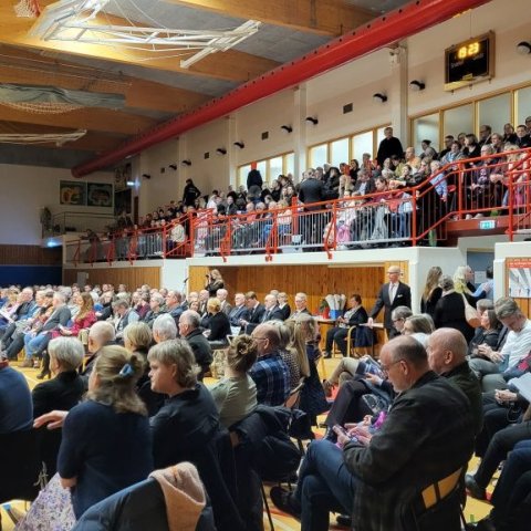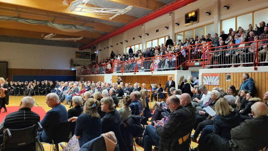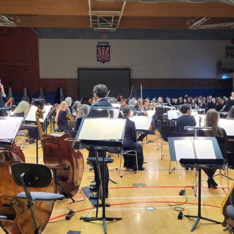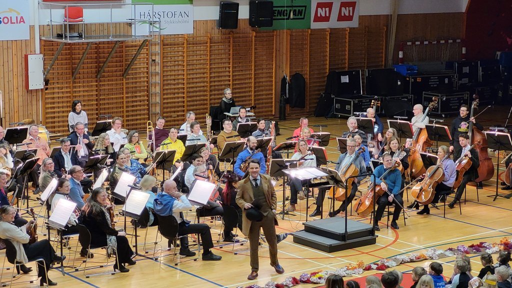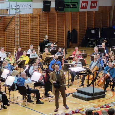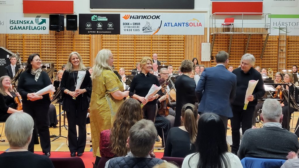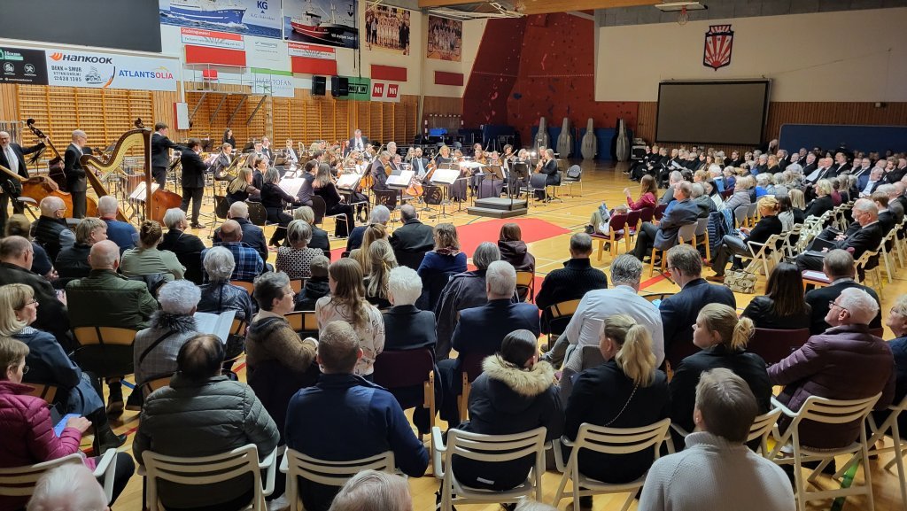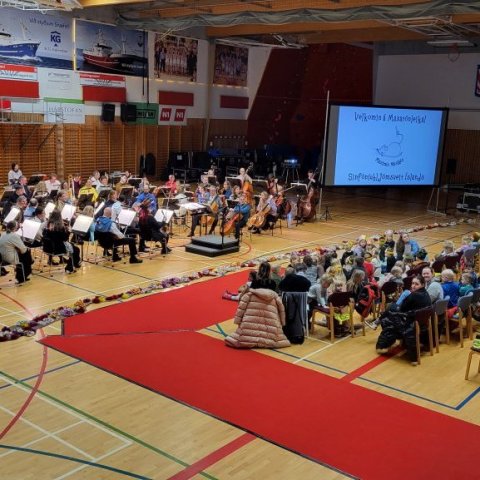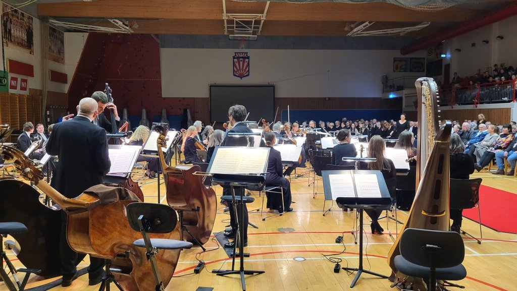 Síðastliðinn fimmtudag, 7. mars, mætti Sinfóníuhljómsveit Íslands í Stykkishólm og hélt stórtónleika í íþróttamiðstöðinni. Áhorfendastúkan var þétt setin auk þess sem töluverður fjöldi sat niðri í sal og naut tónleika, ætla má að hátt í 500 manns hafi mætt á tónleikana. Auk Sinfóníuhljómsveitarinnar komu fram um 80 söngvarar úr Snæfellskum kórum sem fluttu með sveitinni þrjú hugljúf íslensk tónverk.