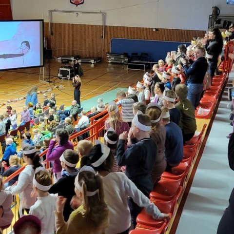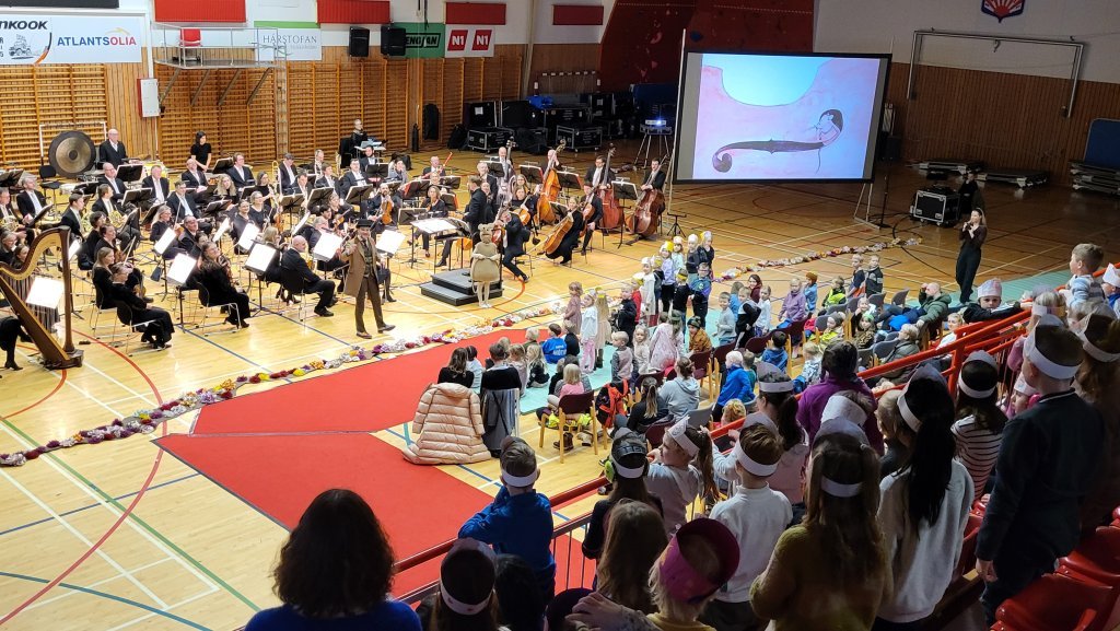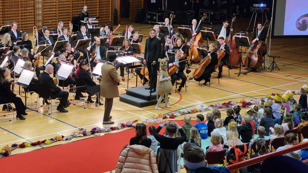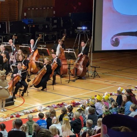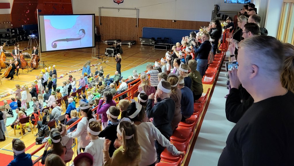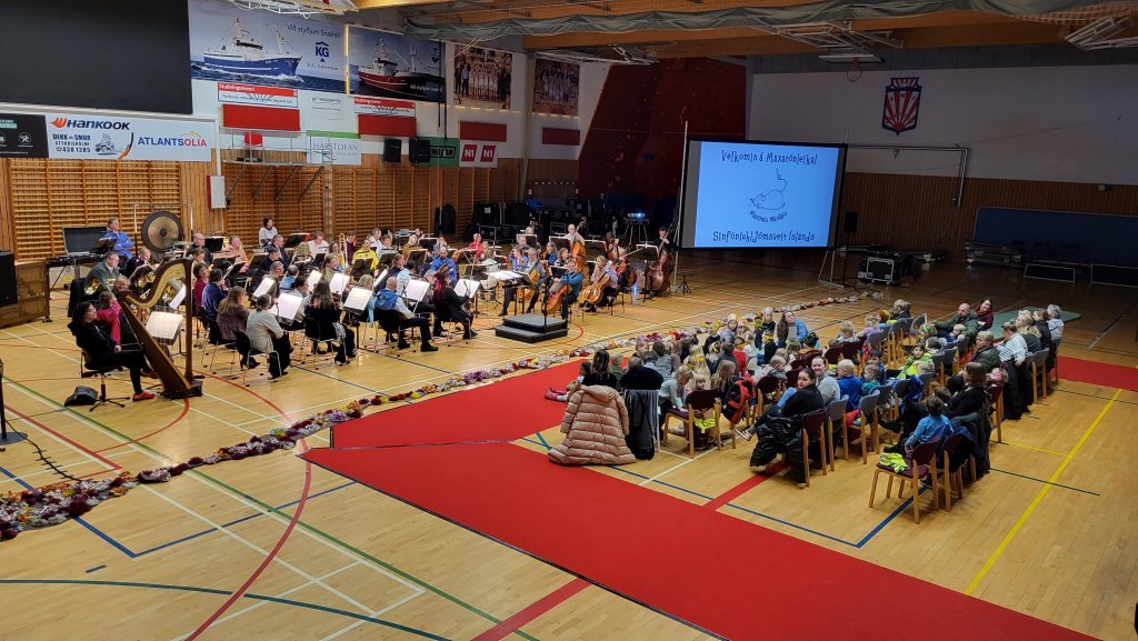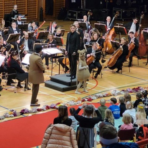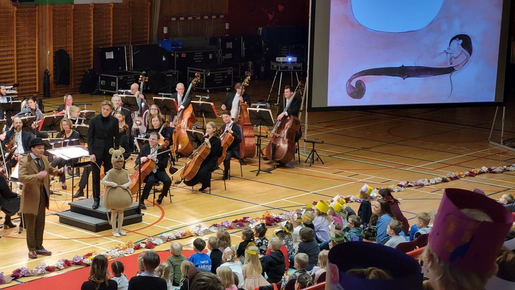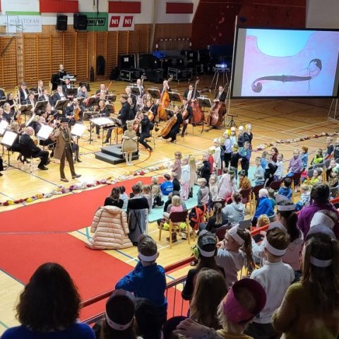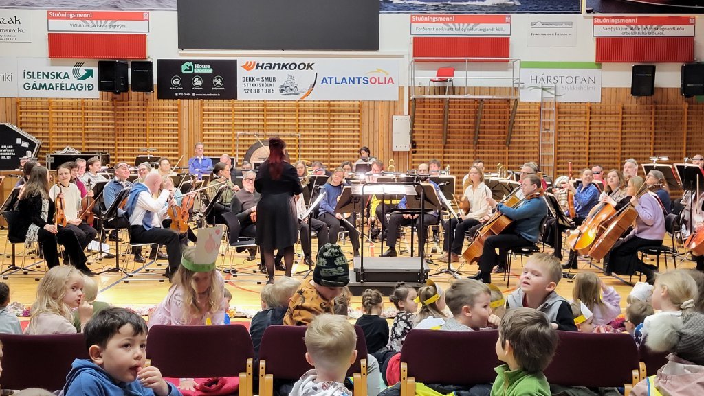Morguninn eftir léku ljúfir tónar Sinfóníunnar um eyru yngri hlustenda þegar sveitin flutti tónlistarævintýrið um Maxímús Músíkús fyrir leik- og grunnskólanema af Snæfellsnesi. Sögumaðurinn Valur Freyr Einarsson leikari sagði þá söguna um músina Maxa, sem rambaði á tónleika Sinfóníuhljómsveitar Íslands og kynntist töfrum tónlistarinnar. Fullt hús barna hlustaði af ákafa á söguna sem náði svo hápunkti þegar músin sjálf steig á svið. Það var Hólmarinn Elín Margrét Sigurðardóttir, nemandi í 4. bekk sem fór með hlutverk Maxímus og stóð sig með miklu prýði.