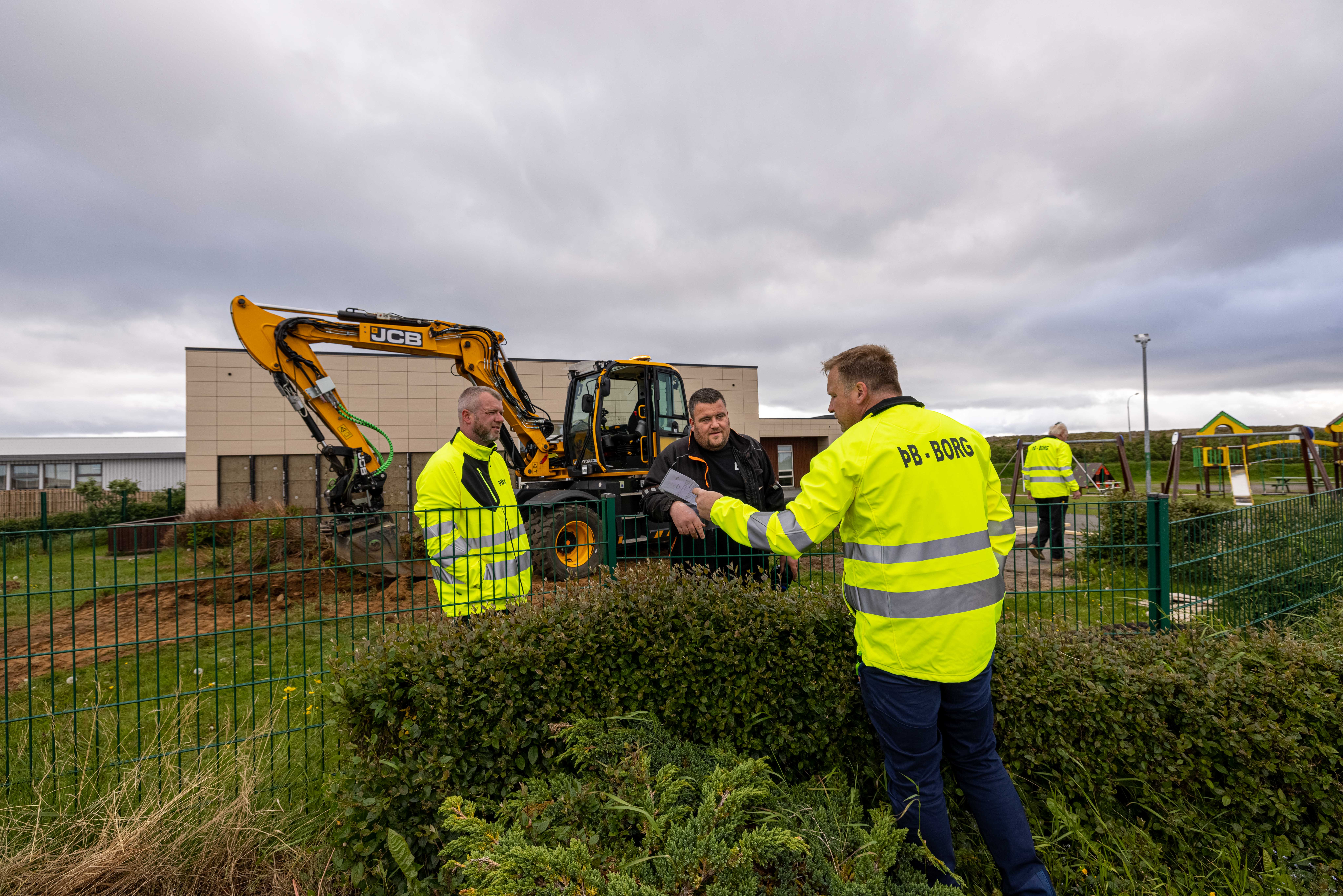 Fyrstu skóflustunguna tók Hrafnhildur Hallvarðsdóttir, forseti bæjarstjórnar, með dyggri aðstoð barnabarns síns Sumarliða Lima. Viðstaddir voru Jakob Björgvin Jakobsson bæjarstjóri, Björn Sverrisson formaður skóla- og fræðslunefndar, Þorbergur Bæringsson verktaki, Maros Vitos, Páll Þorbergsson, Gunnar Björn Haraldsson, Elísabet Lára Björgvinsdóttir aðstoðarleikskólastjóri með barnabarn sitt, Berglind Ósk Kristmundsdóttir deildarstjóri Bakka og Steinunn Magnúsdóttir formaður bæjarráðs.