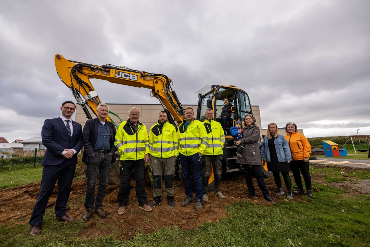 Í dag var tekin fyrsta skóflustunga að viðbyggingu við Leikskólann í Stykkishólmi. Núverandi leikskóli er með þremur deildum og er nú verið að bæta við fjórðu deildinni til þess að mæta auknum nemendafjölda við skólann. Laus kennslustofa hefur verið nýtt til að bera fjórðu deildina frá árinu 2017, sem þá var orðinn fullsetinn, en í frumhönnun leikskólans var gert ráð fyrir að hægt væri að fjölga deildum skólans um eina. Þá var einnig gert ráð fyrir því í deiliskipulagi hvað varðar nýtingarhlutfall og stærð byggingarreits.