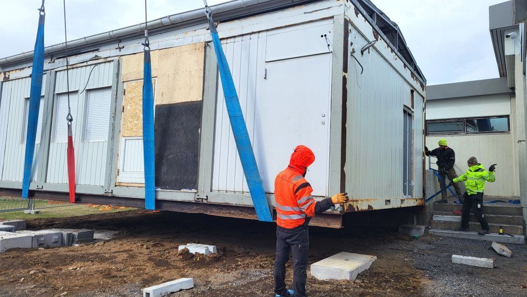 Eins og kunnugt er festi sveitarfélagið nýverið kaup á færanlegum húseiningum. Húseiningarnar voru seldar á uppboði frá Reykjavíkurborg og stóðu áður við Dalskóla. Einingarnar eru um 480 fermetrar að stærð, en þar af er 178 fermetra einingahús úr timbri sem nýtt verður sem tvær kennslustofur, sérkennslurými og opið rými til kennslu. Þar að auki er salerni í húsinu. Fasteignamat á heildarpakkanum 2025 er 92.210.000.- kr. en sveitarfélagið Stykkishólmur átti hæsta boð í húsin sem nam 5.062.000 kr. Búið er að undirbúa fyrir komu húsanna en flutningur hófst á mánudagskvöldið 14. apríl. Hluti húsanna er nú þegar kominn í Hólminn en beðið er betra veðurs til að flytja rest.