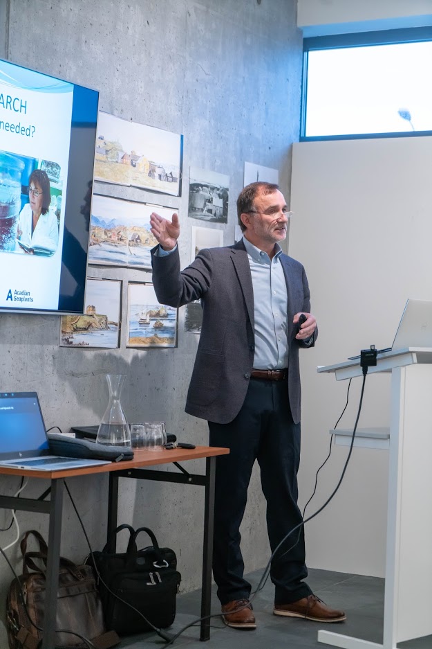 Jakob Björgvin, bæjarstjóri, setti fundinn í Amtsbókasafninu í Stykkishólmi í gær en svo tók við boltanum JP Deveau, forstjóri Acadian Seaplants, sem sagði frá fyrirtækinu sjálfu og framtíðaráformum þess við Breiðafjörð. Þá kom einnig fram Raul Ugarte, yfirmaður auðlindarannsókna hjá Acadian, sem greindi frá sínum rannsóknum og hlutverki innan fyrirtækisins. Einnig komu fram Dr. Karl Gunnarsson og Lilja Gunnarsdóttir og sögðu frá rannsóknum sínum á klóþangi við Breiðafjörð og áhrifum þangtekju á lífríkið.