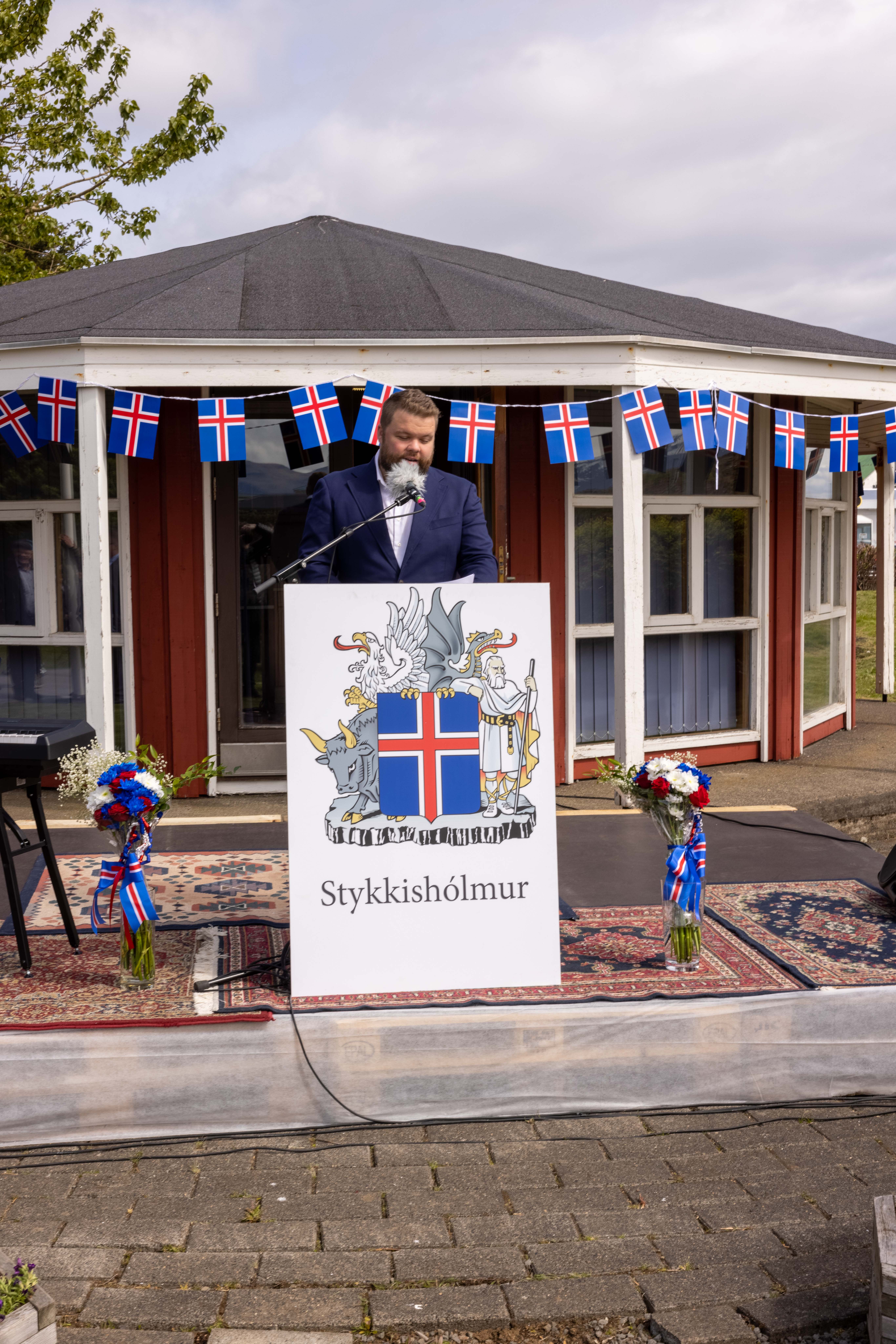 Eins og sjá má á myndunum hér að neðan var sannkölluð hátíðarstemmning í Stykkishólmi í gær, 17. júní. Dagskráin var hefðbundin og veðrið gott eins og vant er. Kynnir á hátíðardagskrá í Hólmgarði var Mattías Arnar Þorgrímsson. Ræðumaður dagsins var Dagný Rún Þorgrímsdóttir. Í ræðu sinni fór hún yfir sína aðkomu sem hjúkrunarfræðingur að heimsfaraldrinum og þá miklu samheldni og seiglu sem hún upplifði við sín störf. Fjallkonan var Nanna Guðmundsdóttir og flutti hún ljóðið Blómasaga eftir Davíð Stefánsson frá Fagraskógi.