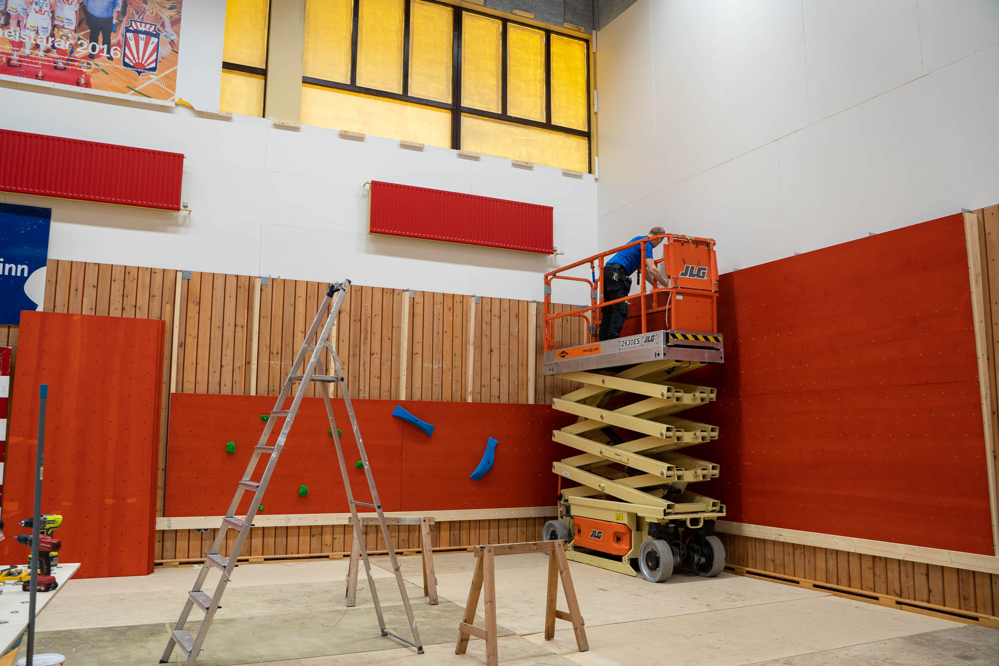 Klifurveggur settur upp í íþróttamiðstöðinni