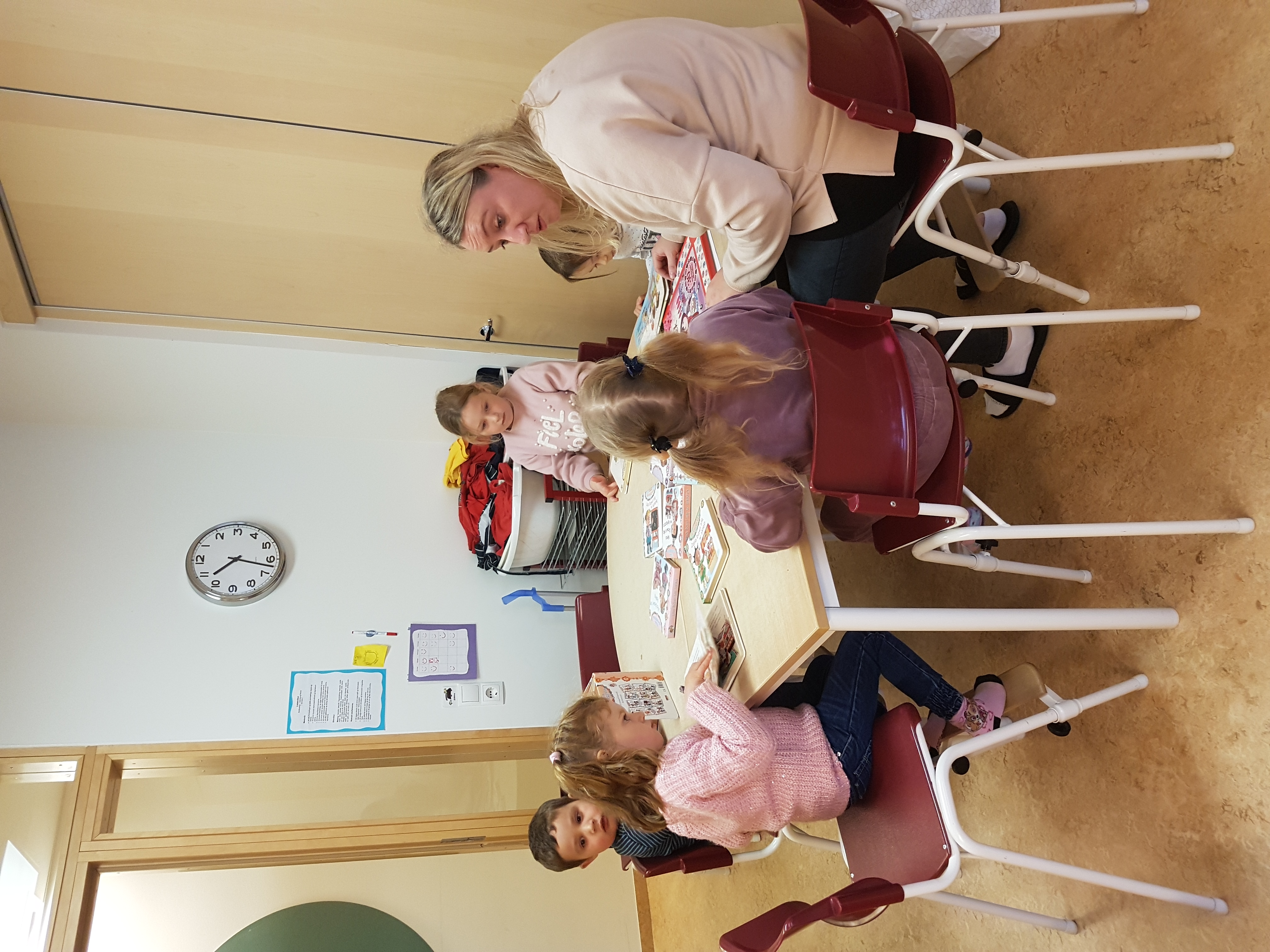 Í haust byrjuðum við á þeirri nýbreytni að hafa lesstund fyrir þá nemendur leikskólans sem eru með pólsku að móðurmáli. Við erum núna með 9 börn af pólskum uppruna og 3 kennara. Um áramótin bætast við 2 börn í þennan hóp. Þetta hefur mælst vel fyrir hjá börnunum og þessir tímar eru nýttir í spjalla og annað sem þeim dettur í hug, eins og föndur og spil. Á þessum myndum er Monika að lesa fyrir hópinn. Við eigum aðeins af bókum á pólsku og eins hafa kennarar komið með bækur að heiman.