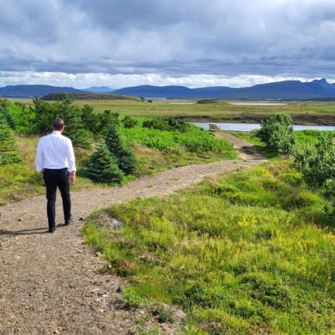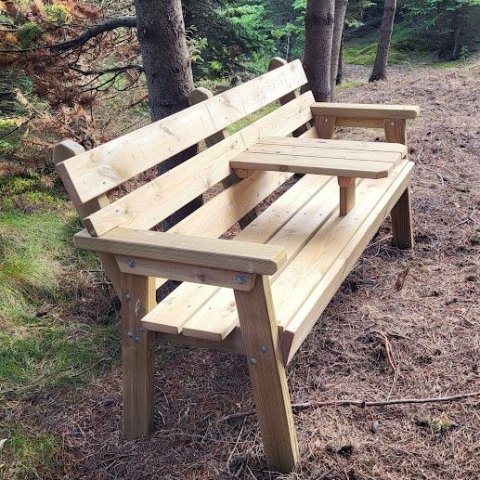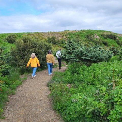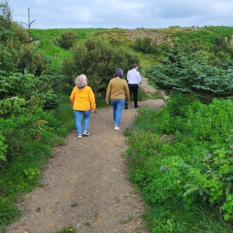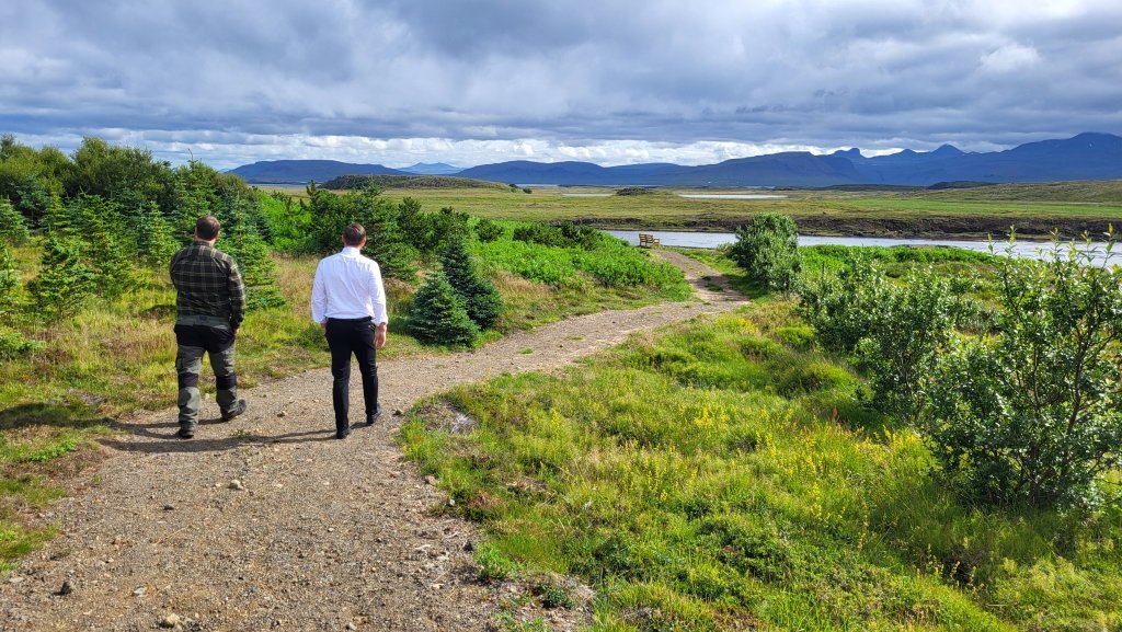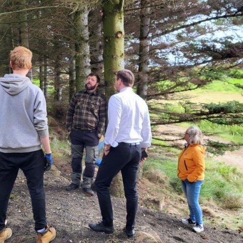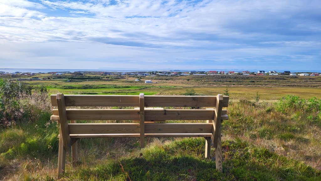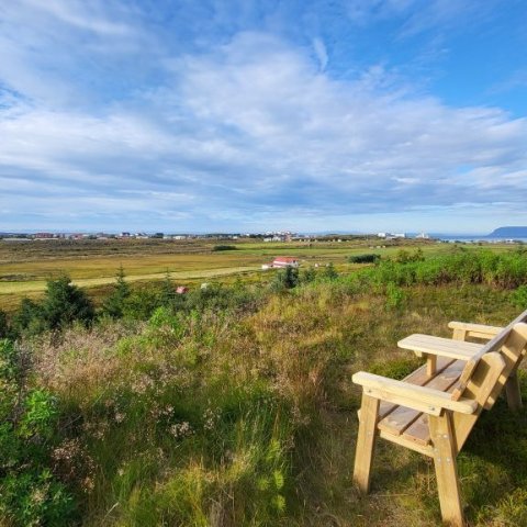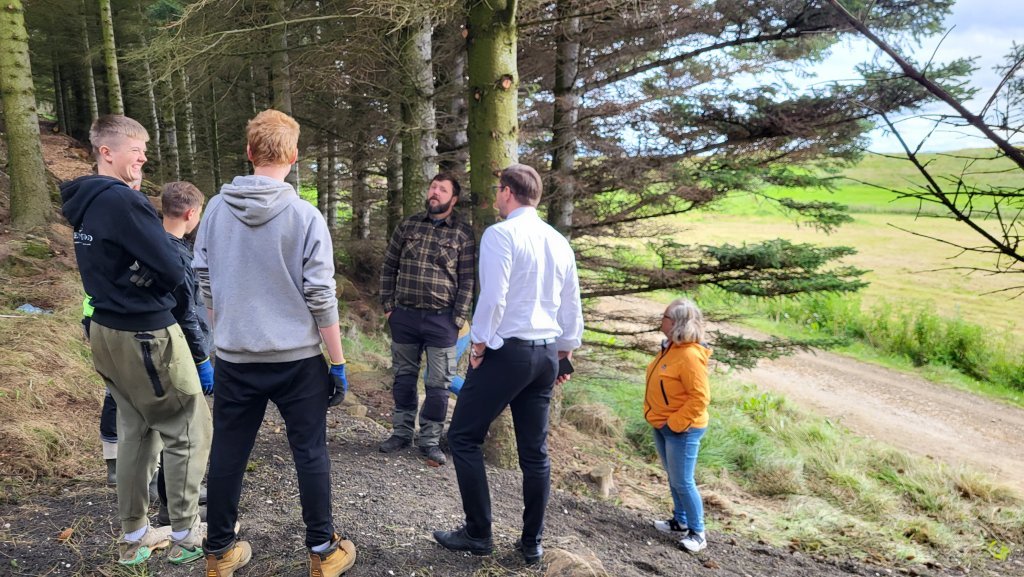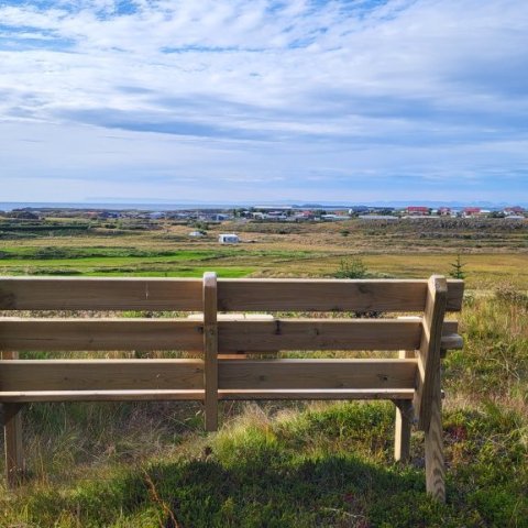 Við göngustígana í Nýrækt hefur nýjum bekkjum víða verið komið fyrir sem margir hverjir eru útbúnir litlu borði sem hentar vel undir kaffi og nesti. Myndirnar hér að neðan voru teknar þegar Björn Ásgeir, formaður Skógræktarfélagsins, gekk með bæjarráð og bæjarstjóra um svæðið nú á dögunum og ræddi framtíðaráform félagsins. Á fyrstu myndunum er einnig hluti samfélagsflokksins sem vann þrekvirki í skóginum í sumar.