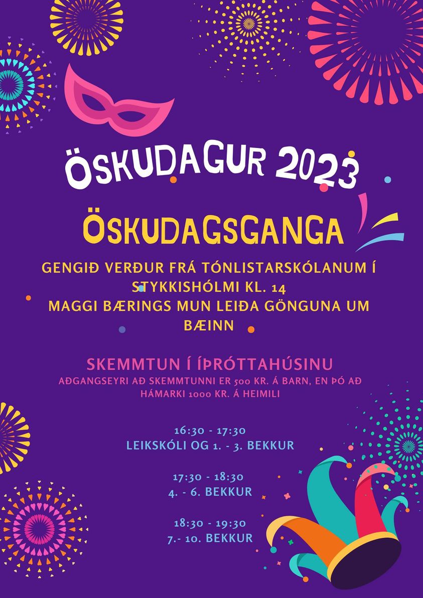 Miðvikudaginn 22. febrúar rennur upp hinn sívinsæli Öskudagur, sem jafnan er mikið tilhlökkunarefni barna víðsvegar um landið. Dagurinn verður með hefðbundnu sniði í Stykkishólmi í ár.
