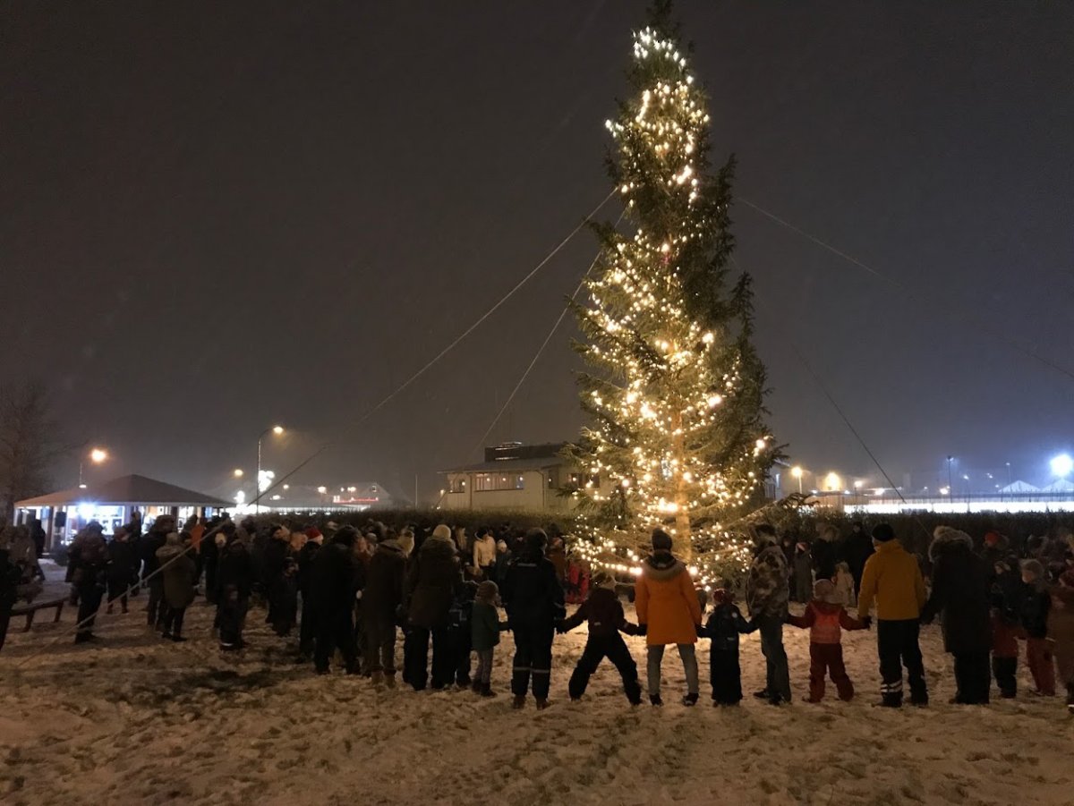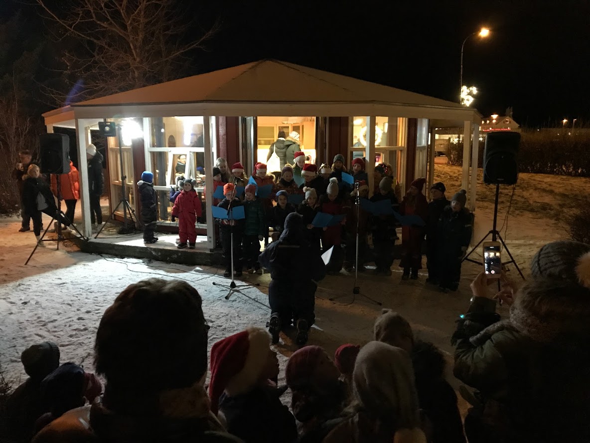 Jólaljósin voru tendruð í gær við hátíðlega athöfn í Hólmgarði. Veðrið var með besta móti og margt um manninn að vanda. Tónmenntarnemar Grunnskólans sungu jólalög, kvenfélagskonur seldu heitt súkkulaði og smákökur, jólasveinar kíktu við og gáfu börnum mandarínur og dansað var í kringum jólatréð.