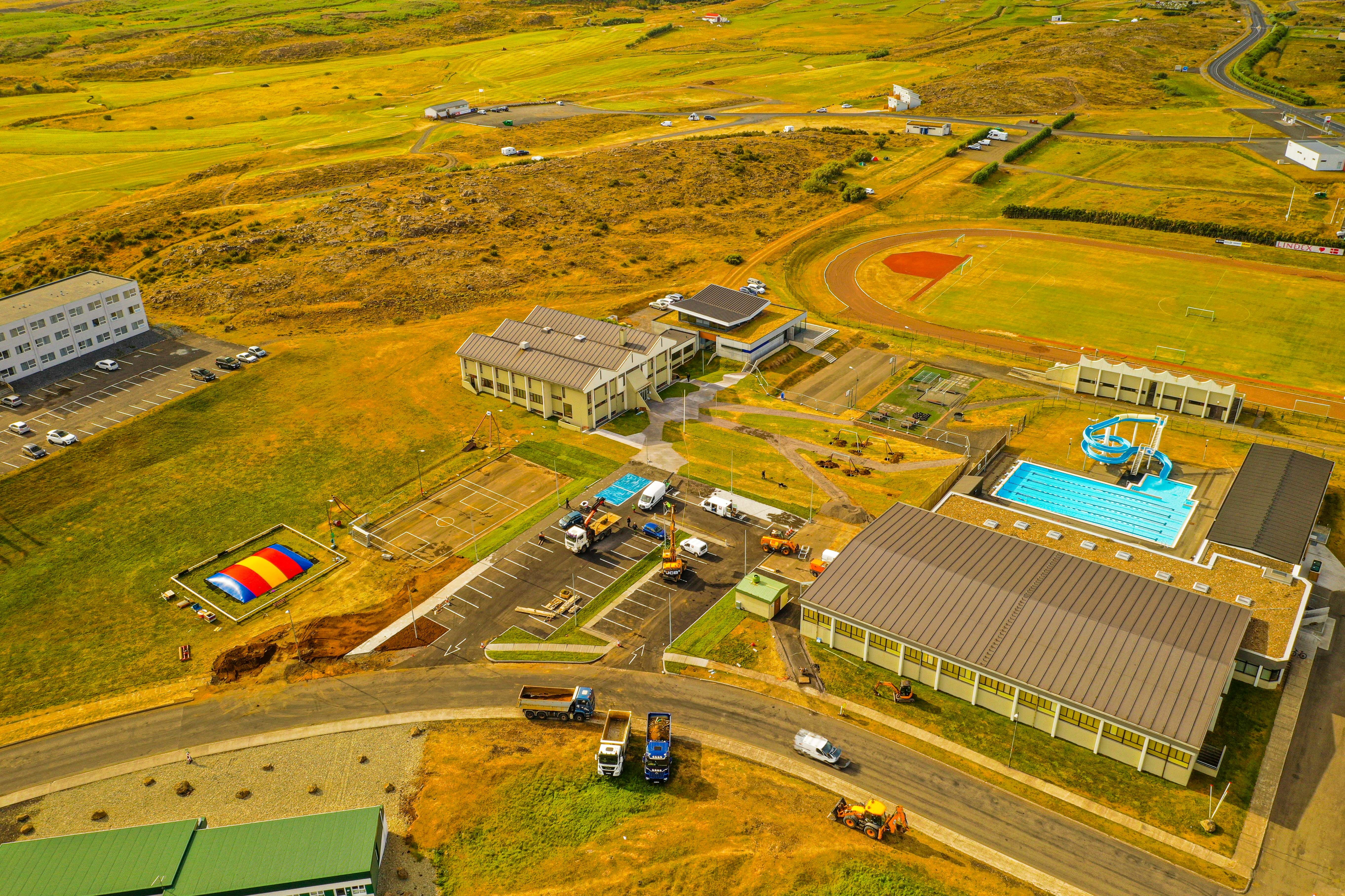 Miklar framkvæmdir hafa verið á skólalóðinni undanfariðsem gengið hafa vel. Malbikunar- og steypuvinnu er að mestu leyti lokið eneinnig er búið að bæta aðgengi fyrir vörumóttöku með nýrri hurð og ramp upp aðhenni á aftanverðum matsal skólans. Þarf því ekki lengur að keyra mjólkurvörurog fleira upp að aðalinngangi skólans á stórum bílum líkt og hingað tilhefur verið gert.