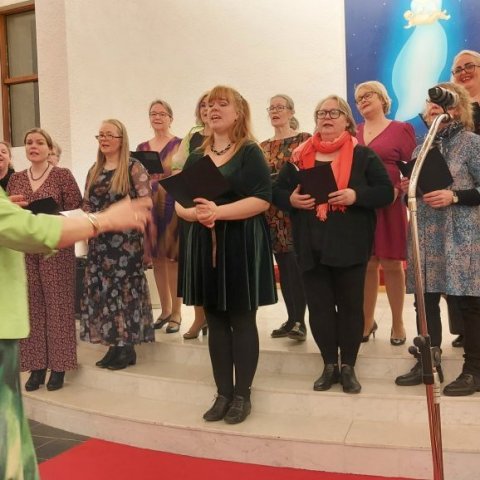 Menningarhátíðin Norðurljósin er haldin í sjöunda sinn í Stykkishólmi nú um helgina. Hrafnhildur Hallvarðsdóttir, forseti bæjarstjórnar setti hátíðina á opnunartónleikum sem fram fóru í Stykkishólmskirkju í gær, fimmtudag, en þar var boðið til sannkallaðrar söngveislu að hætti Hólmfríðar Friðjónsdóttur. Fram komu þrír kórar; Karlakórinn Heiðbjört, Kvennasveitin Skaði og Söngsveitin Blær en einnig komu fram Lárus Ástmar Hannesson, Halla Dís Hallfreðsdóttir og Hólmfríður sjálf. Um undirleik sáu þeir Lázsló Petö, Hólmgeir S.Þórsteinsson, Haukur Garðarsson og Martin Markvoll.