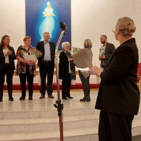 Seinni viðurkenningin fellur í skaut konu sem hefur lagt sitt af mörkum til að standa vörð um menningararf og sögulegt umhverfi Stykkishólms eins og uppbygging á hótel Egilsen ber vott um. Af elju og framsýni hefur hún svo eflt menningarlíf í Stykkishólmi svo um munar. Hún var forsprakki þess að stofna Júlíönuhátíðina, menningarviðburð sem hefur farið fram óslitið frá árinu 2013. Hátíðin sem er orðin fastur menningarliður í Stykkishólmi sameinar listafólk, fyrirtæki, stofnanir og bæjarbúa, og skapar vettvang fyrir samvinnu, gleði og listsköpun. Þar hefur hún stuðlað að því að styrkja tengsl milli menningar og daglegs lífs bæjarbúa eins og t.d. samstarf við skóla bæjarins er gott dæmi um. Við viljum biðja Grétu Sigurðardóttur að koma hingað upp og þiggja virðingarvott frá sveitarfélaginu sem kemur einnig úr smiðju Láru Gunnarsdóttur.