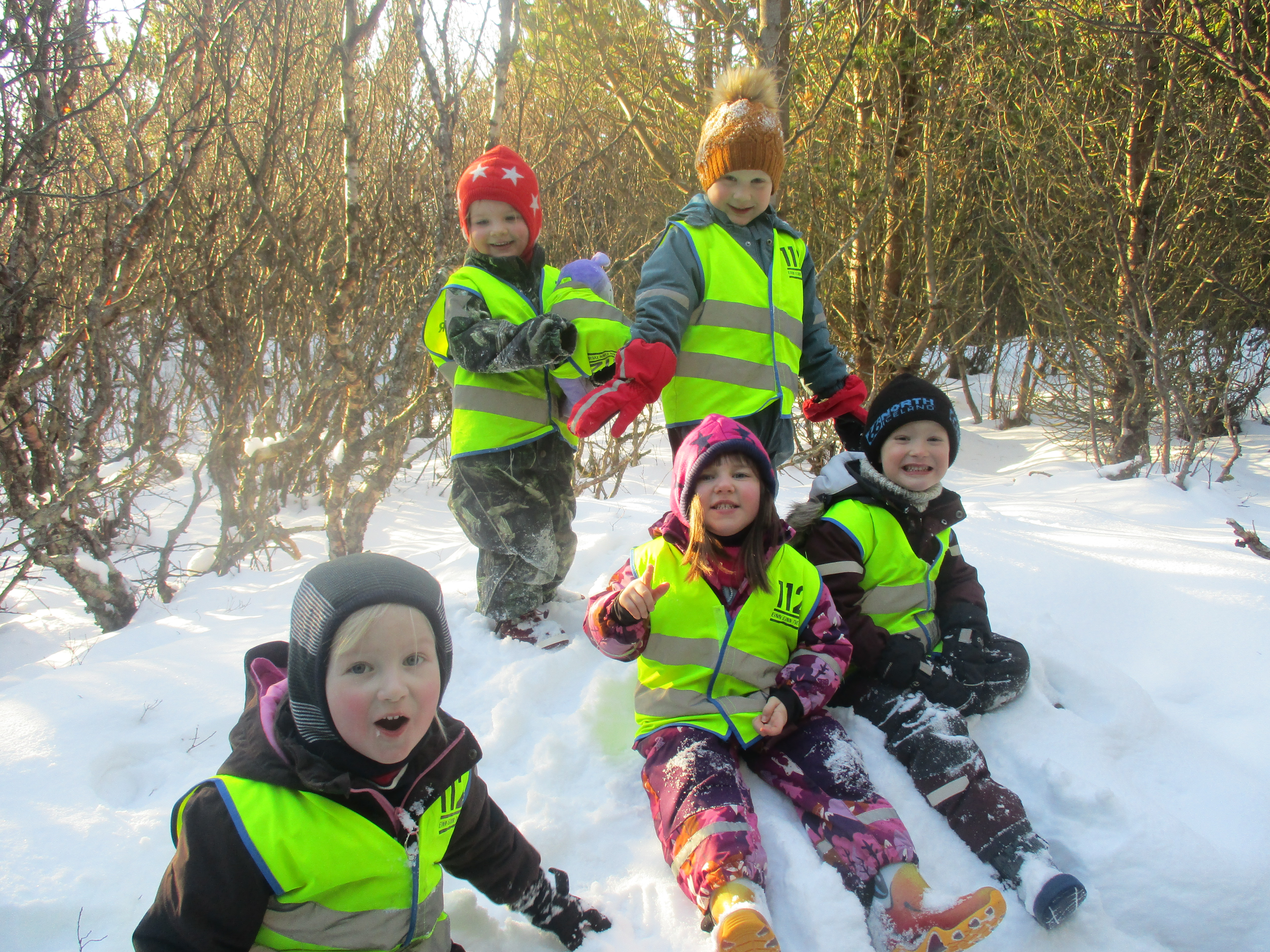Í morgunhúmi í janúar staulast röð af börnum í gulum vestum með kennurunum sínum í gegnum skaflanna á leið frá leikskólanum og upp í Nýrækt, eða í skóginn eins og þau orða það. Sum ganga á hlið eða afturábak, ? með rassinn út í vindinn?, til að skýla andlitinu fyrir skafrenningnum, en þó eru öll glöð og brosandi. Maður lætur ekki veðrið á sig fá þegar maður er á leiðinni í ævintýri.
