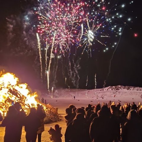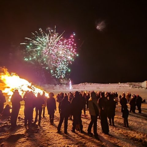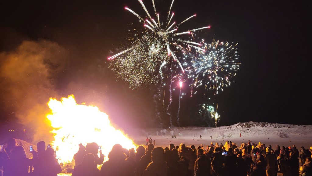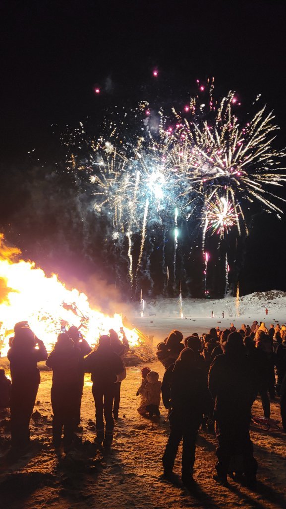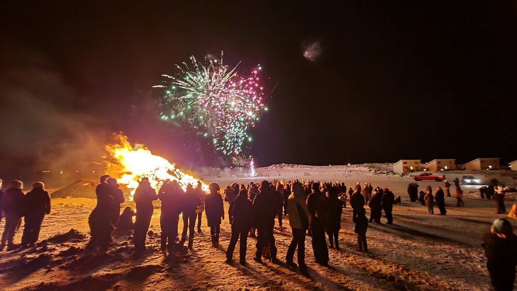Veitt var viðurkenning fyrir best skreytta húsið jólin 2024 en það voru þau Dagbjört Bæringsdóttir og Guðmundur Gunnlaugsson sem hrepptu titilinn fyrir skreytingar að Hjallatanga 4. Venju samkvæmt setti björgunarsveitin Berserkir svo punktinn yfir i-ið með litríkri og glæsilegri flugeldasýningu.