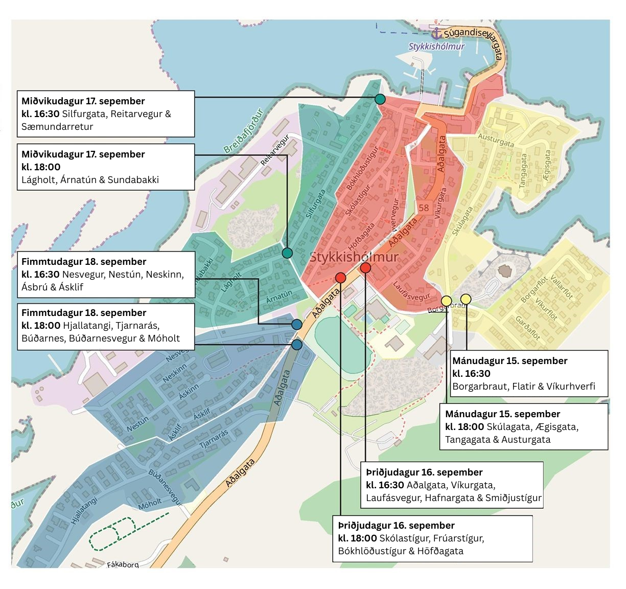 Kl. 16:30 Aðalgata, Víkurgata, Laufásvegur, Hafnargata & Smiðjustígur (mæting við Bónus)