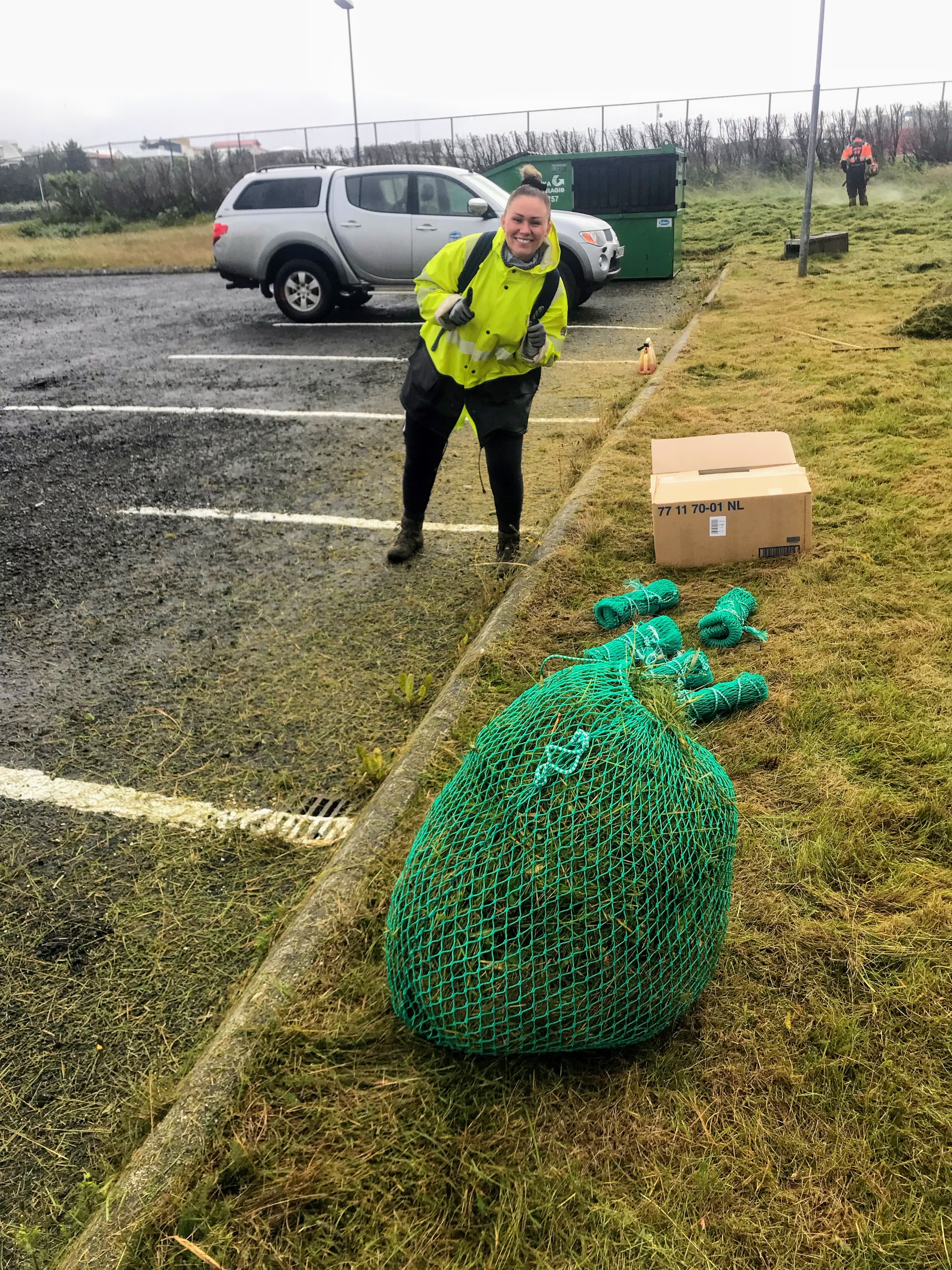 Dagbjört var kampakát með nýju fjölnota netapokana sem teknir voru í notun í fyrra.