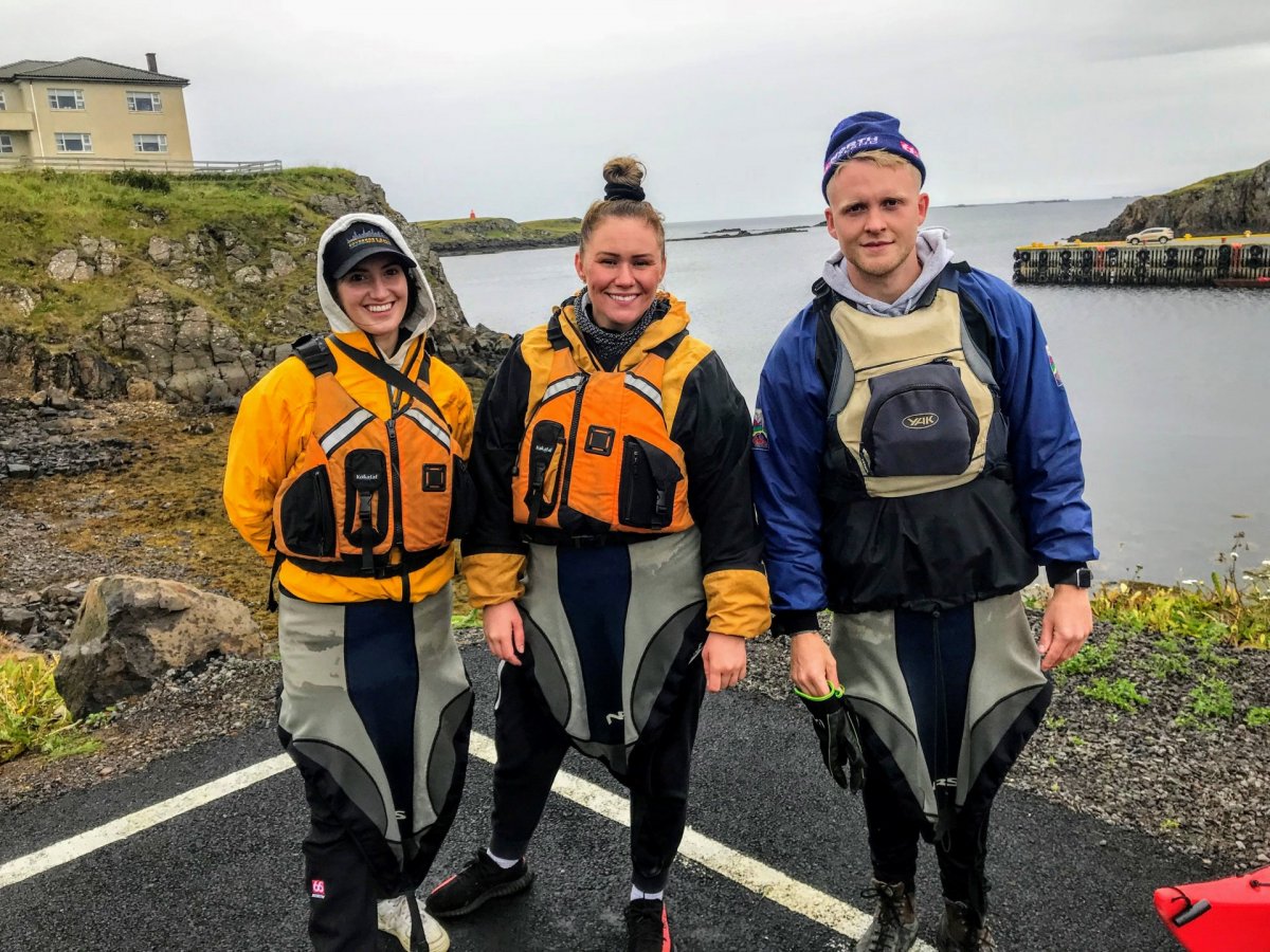 Sigrún Sif Jónsdóttir, Dagbjört Ýr Kiesel og Darri Logi Skúlason (flokkstjórar 2020) skelltu sér á kayak síðasta sumar.