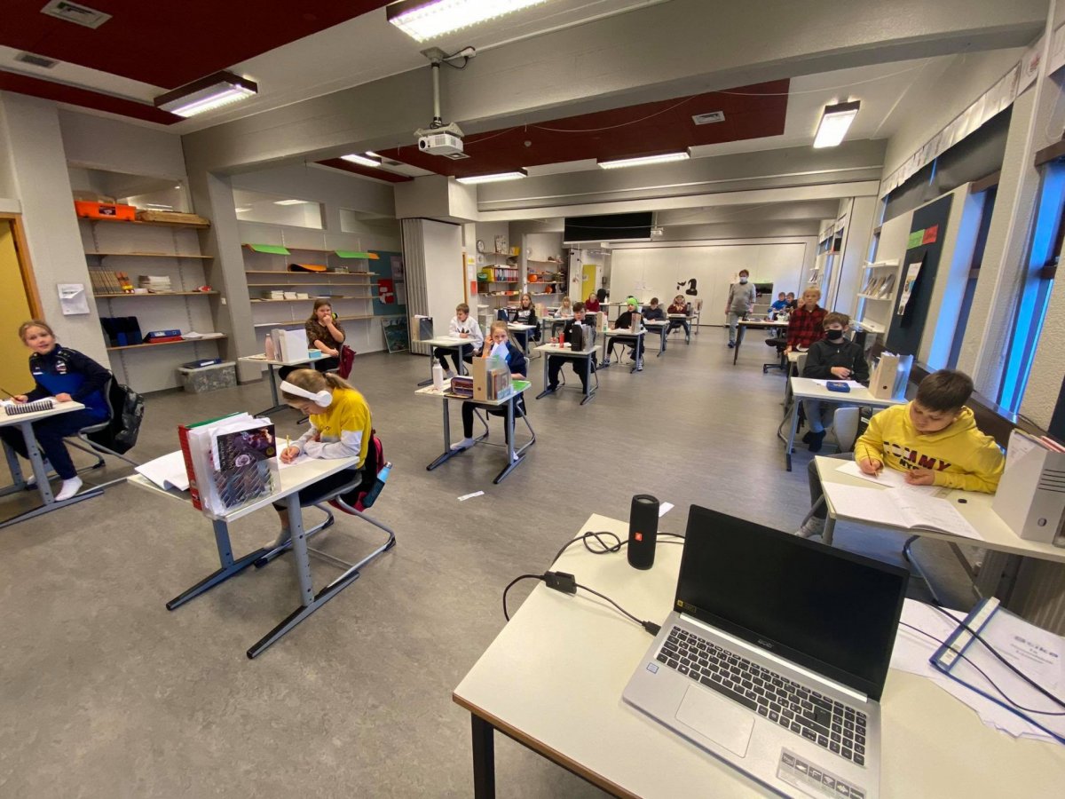 Fyrir 5. og 6. bekk þurftum við að finna nógu stórt rými svo þau gætu haft tvo metra á milli sín því ekki vildum við að þau væru með andlitsgrímur allan daginn. 5. bekkur fékk því þrjár stofur til afnota sem hægt er að opna á milli, Flatey, Bíldsey og Súgandisey. 6. bekkur fékk afnot af rými í Amtsbókasafninu. Ekki var hægt að koma því við að þau fái mat í mötuneyti vegna plássleysis og ekki var hægt að ætlast til þess að þau væru með grímur þar því eðlilega er þá ekki hægt að matast.