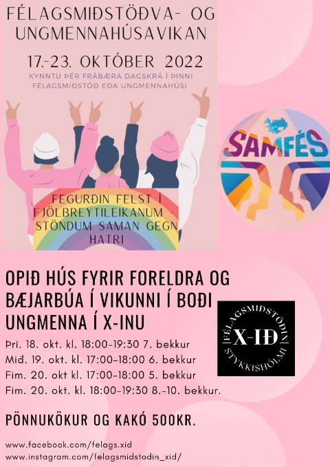 Í tilefni af félagsmiðstöðva- og ungmennahúsavikunni, 17.-23. október 2022, opnar félagsmiðstöðin X-ið dyr sínar fyrir bæjarbúum. Opið hús verður í X-inu fyrir foreldra og bæjarbúa sem hér segir: