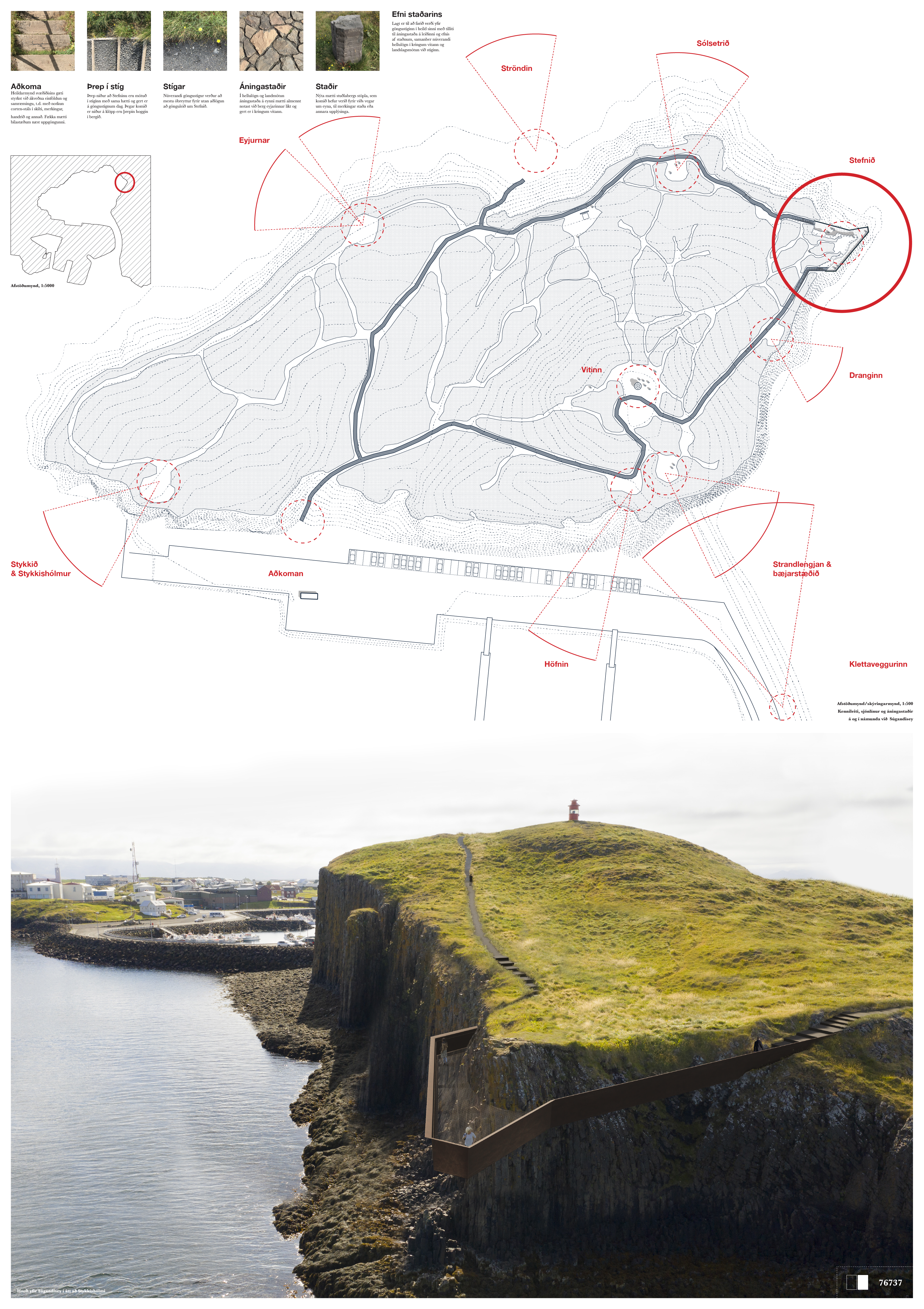 Í greinagerð vinningstillögunnar kemur fram að við hönnun hafi verið leitast við að finna jafnvægi á milli þess náttúrulega og manngerða, þar sem varfærni, virðing og auðmýkt gagnvart staðnum voru leiðarstef í hugmyndavinnu og lausn verkefnisins.